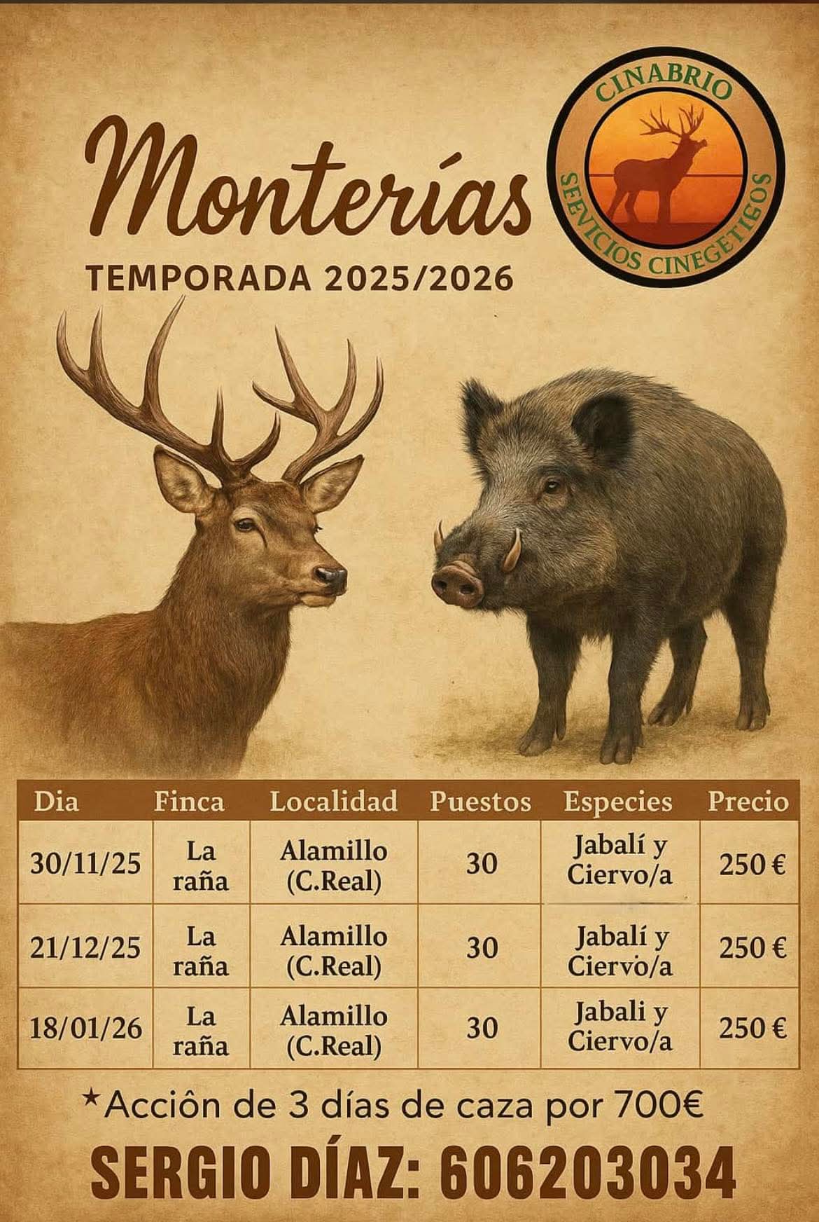CINABRIO SERVICIOS CINEGÉTICOS ha publicado su calendario de monterías 2025-2026.
