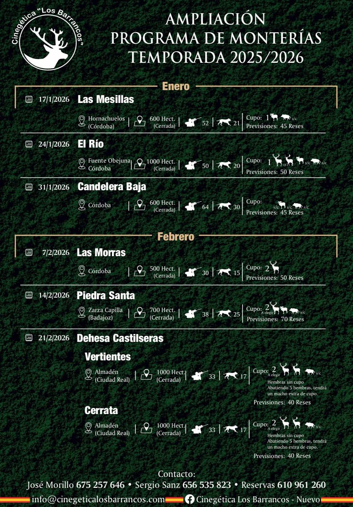 El nuevo año empieza para CINEGÉTICA LOS BARRANCOS anunciando una importante ampliación de las monterías de su calendario.