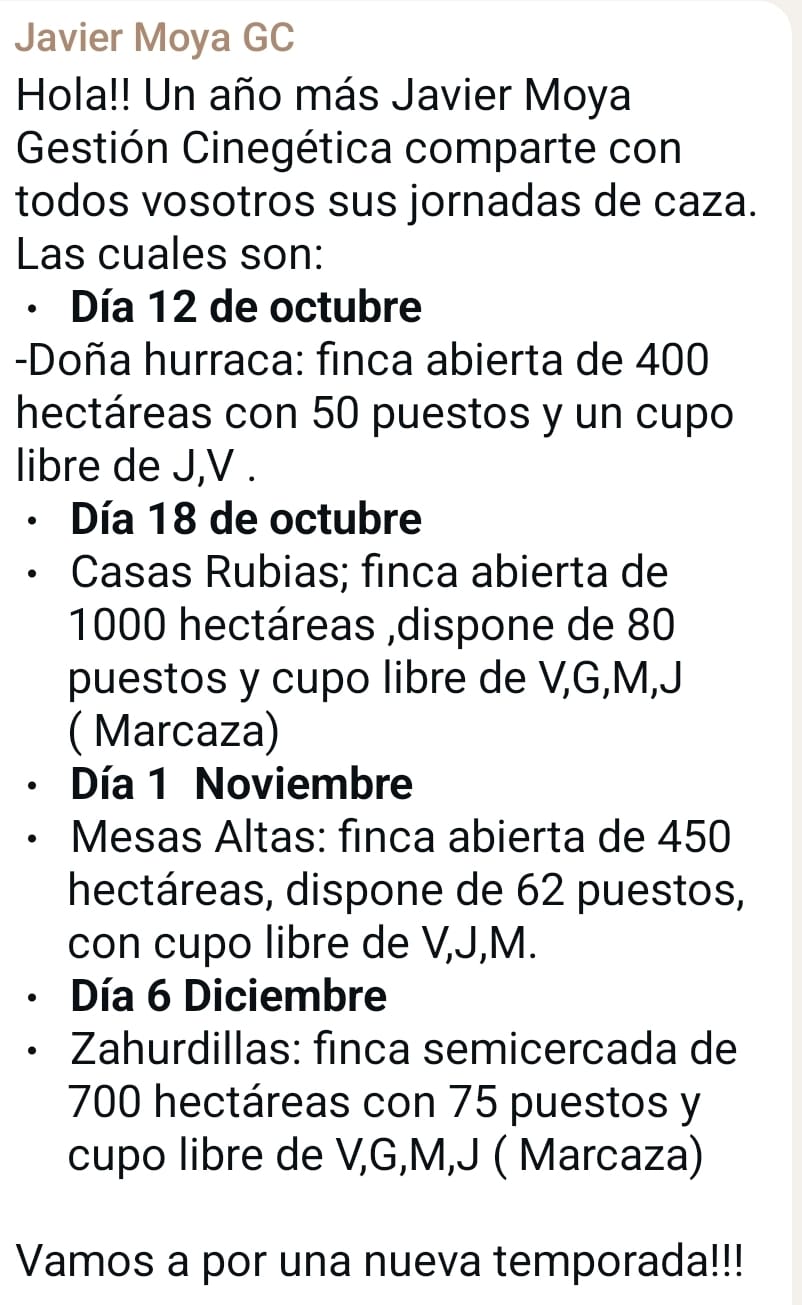 | 6/12/2025 | ![]() | CÓRDOBA | ZAHURDILLAS | A | ![]() | JAVIER MOYA GC | 75 | J/V/G/M | S/C | – | Más info 689654327 |