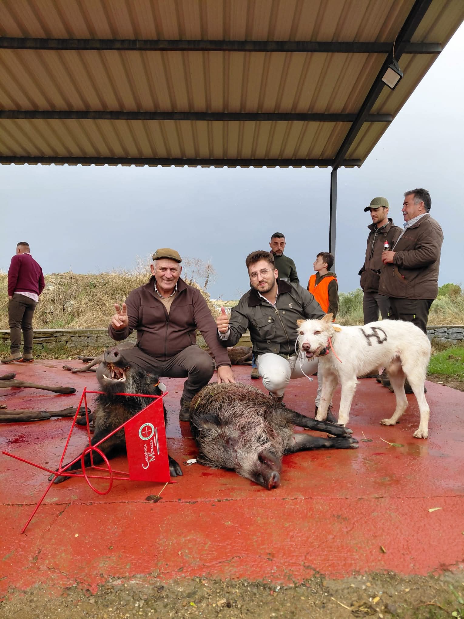A primera hora de la tarde, alrededor de las 15:00h, una intensa tromba de agua complicó las labores de recogida. Finalmente, sobre las cinco de la tarde se confirmó el plantel final de 8 venados y 12 jabalíes, destacando tres navajeros de buena entidad.