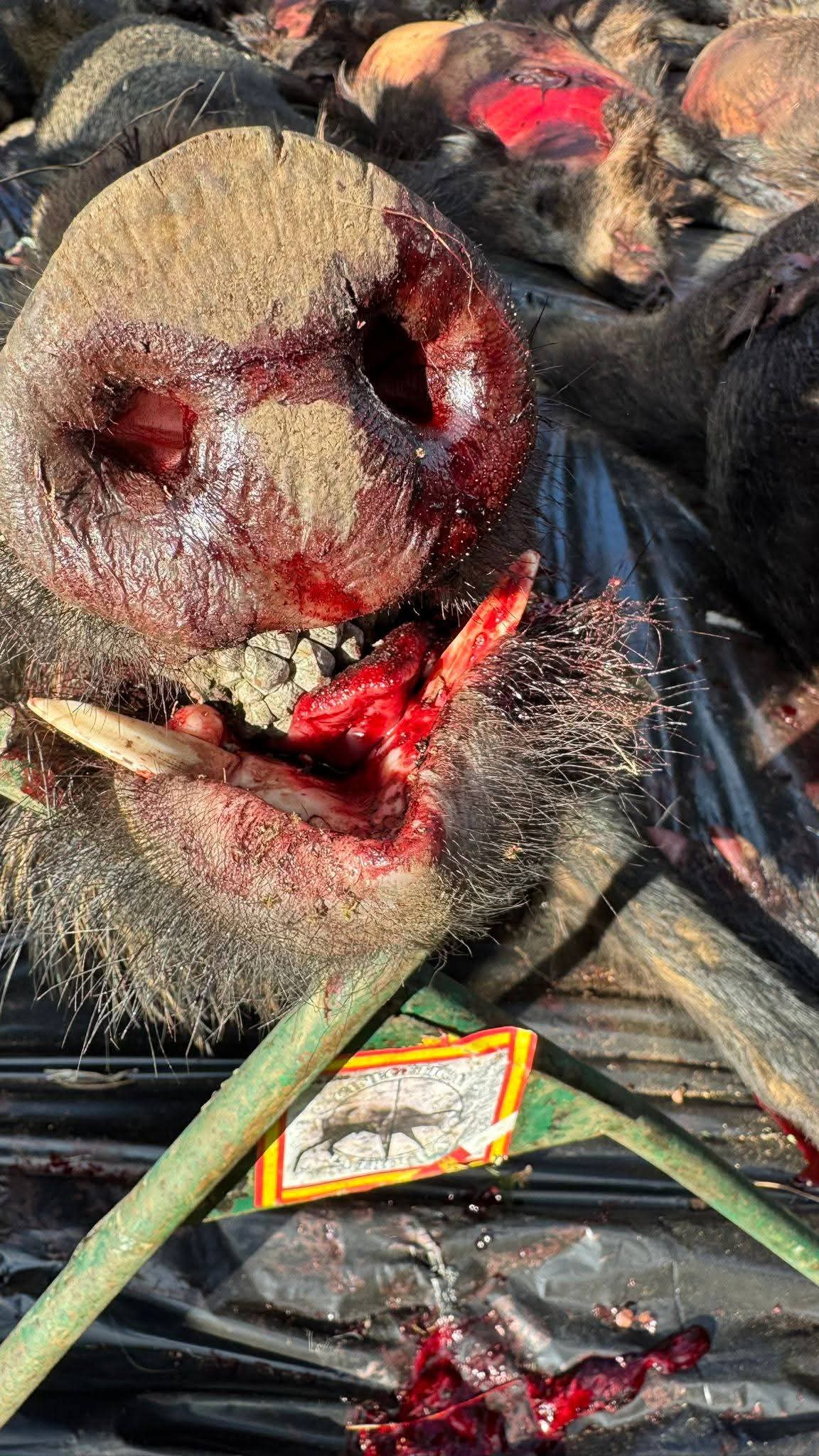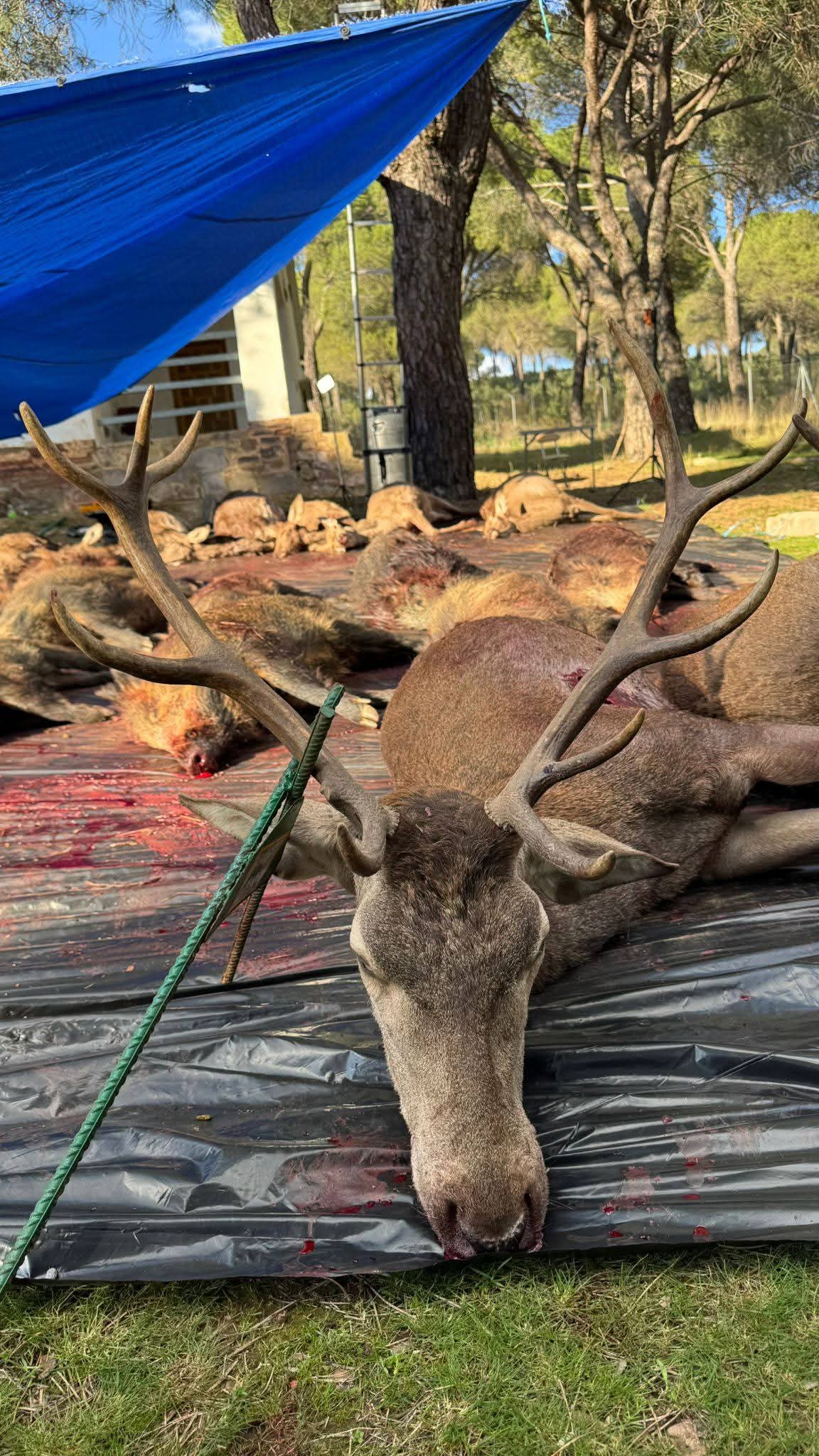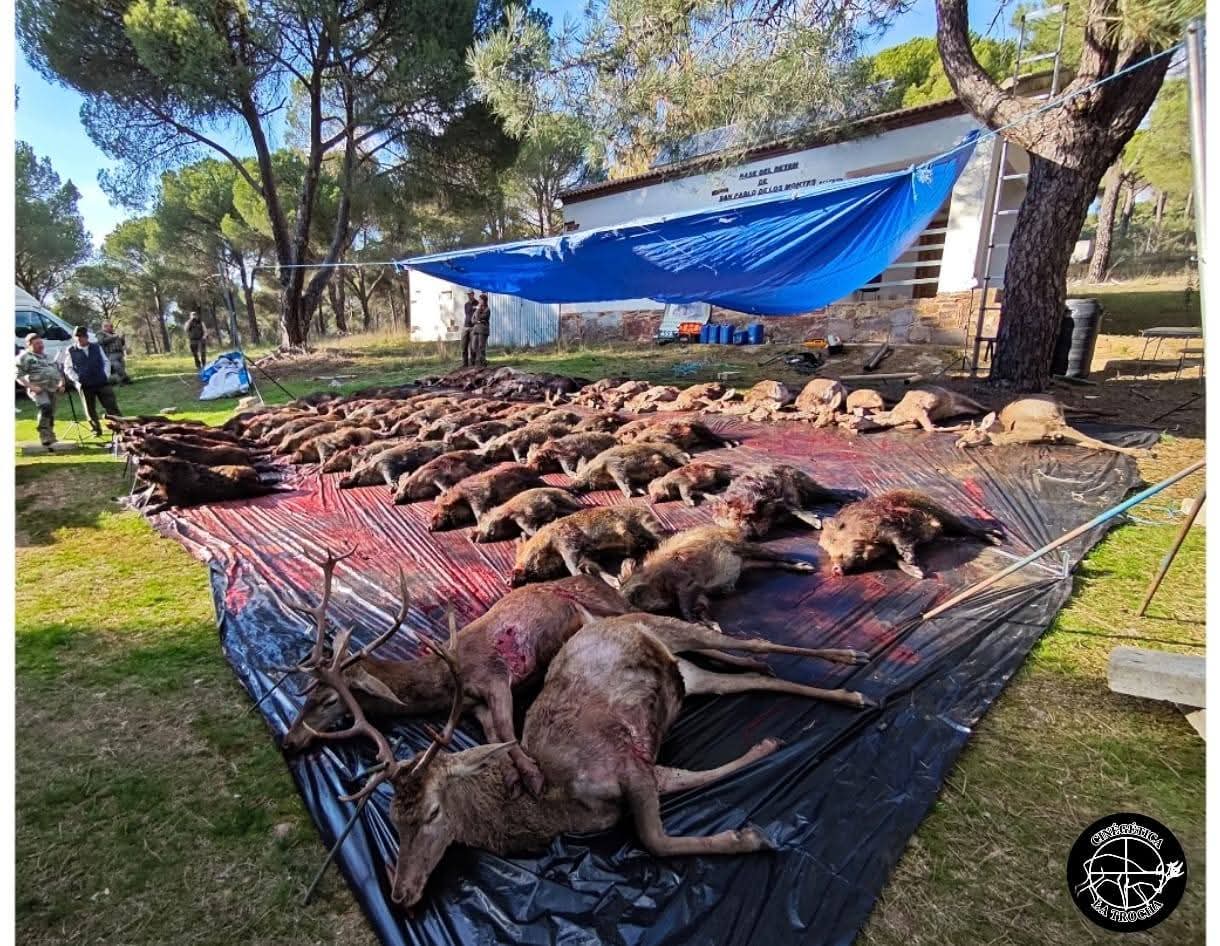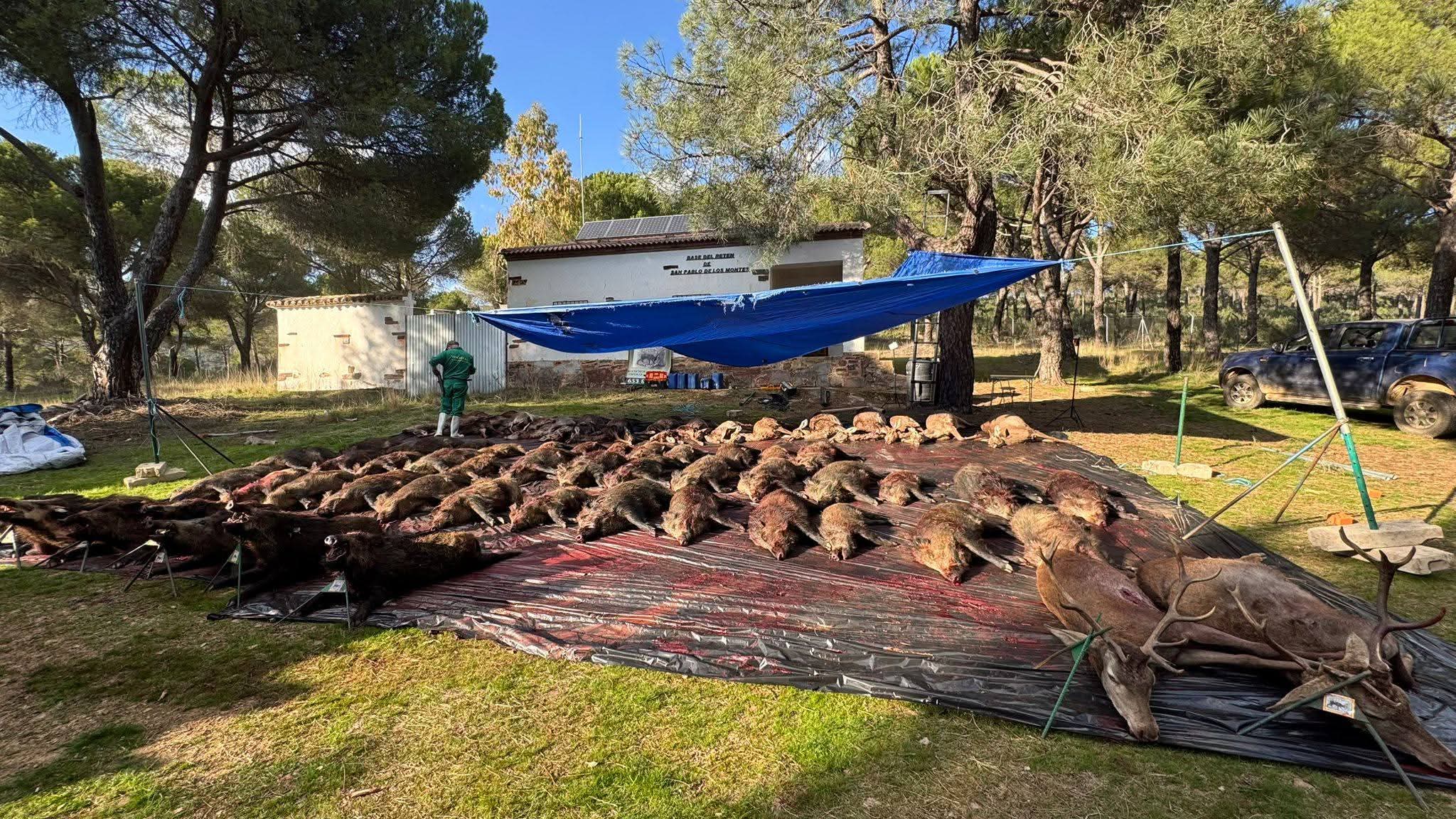 Finalizada la montería se organizó una rápida recogida de reses para tener pronto el plantel en la junta de carnes.