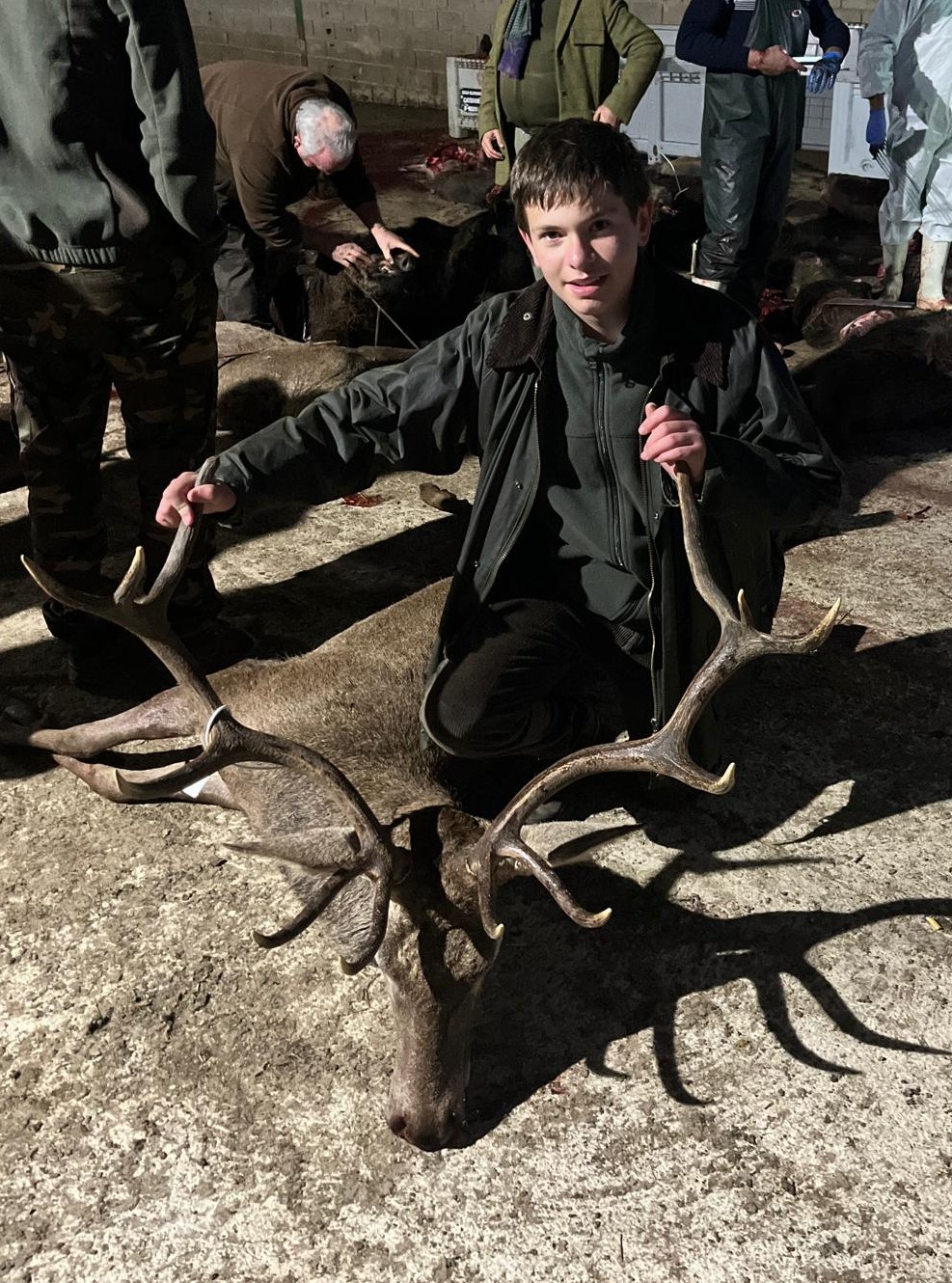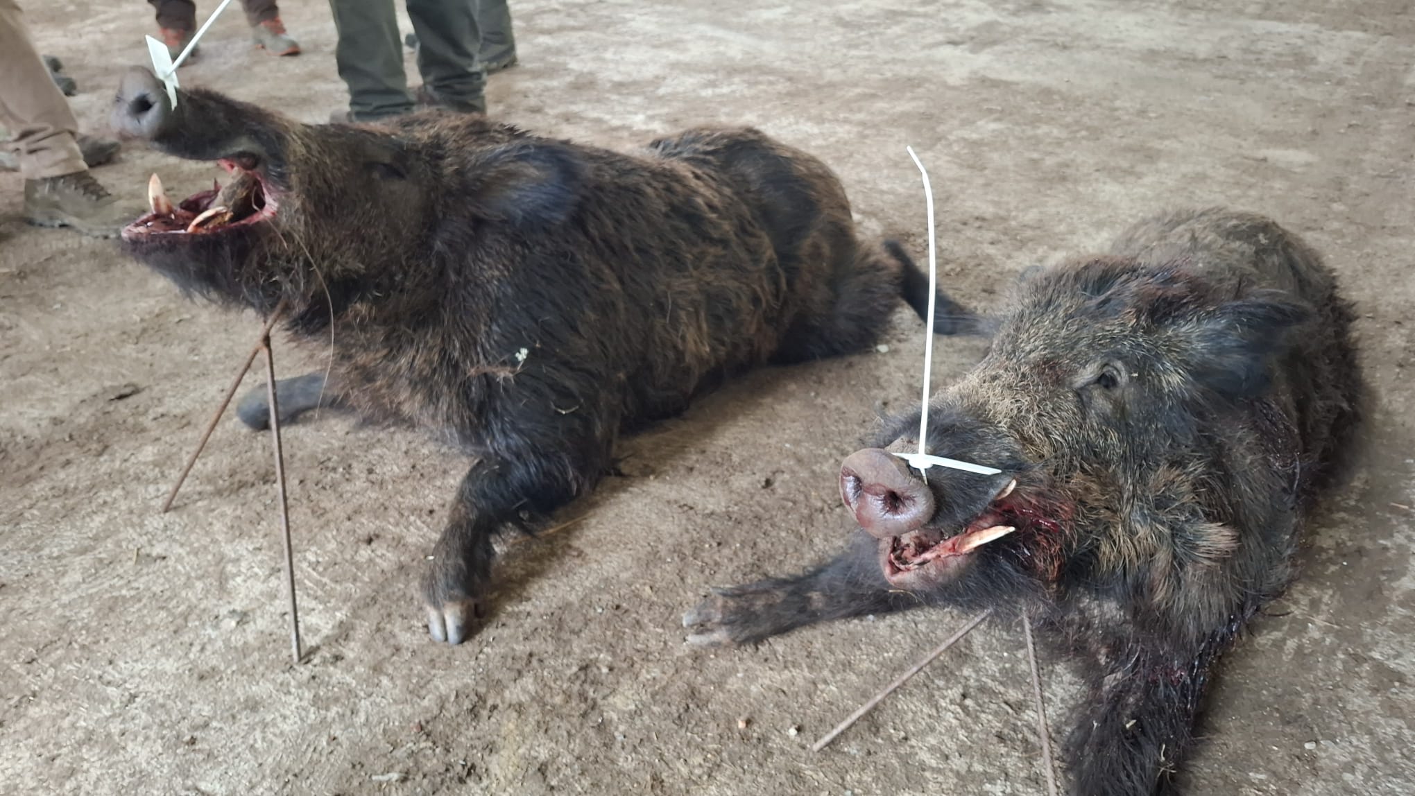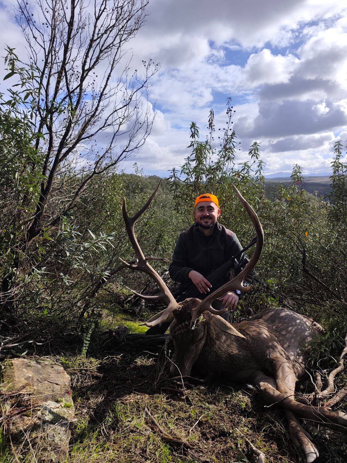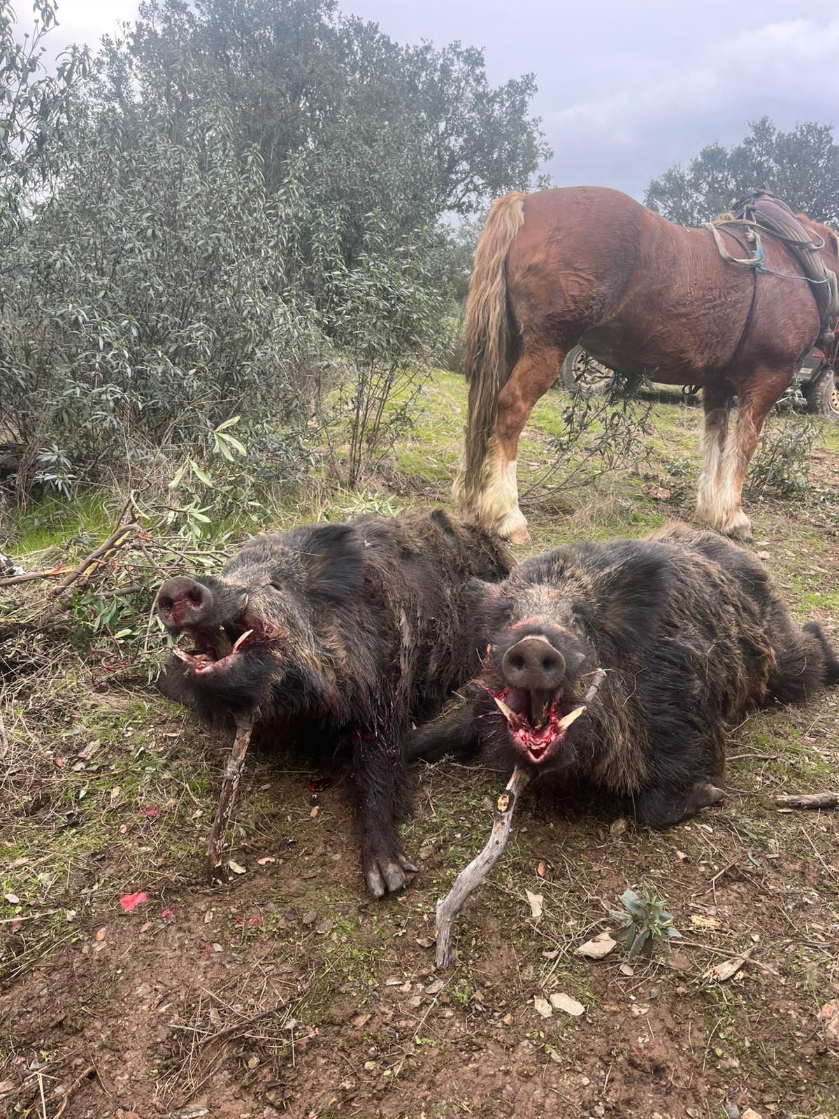 La misma intensidad y emoción que se vivió en muchas posturas por distintas armadas, como le ocurrió a Julen, abatiendo 2 venados, uno muy bueno, Manuel, que hizo doblete de gamos, uno de ellos posible plata, Raúl, que se hizo con el mejor venado de la jornada, posible bronce, Juan Robles, que abatía otro bonito venado, Manuel Alcalá, que se hacía con un bonito navajero rematado a cuchillo por las rehalas, Raúl, con 2 cochinos, uno de ellos navajero, en el nº 7 de Las Pizarras, Raquel y Pedro, que abatían 2 cochinos cada uno en sus respectivos puestos, siendo los de Pedro dos bonitos navajeros, José Fernández, Pepe Márquez, Alfonso Ecenarro o Luís SJB, con un cochino cada uno en sus posturas …, y así un buen número de puestos, sobre todo en las traviesas, donde los cochinos dieron mucho juego.