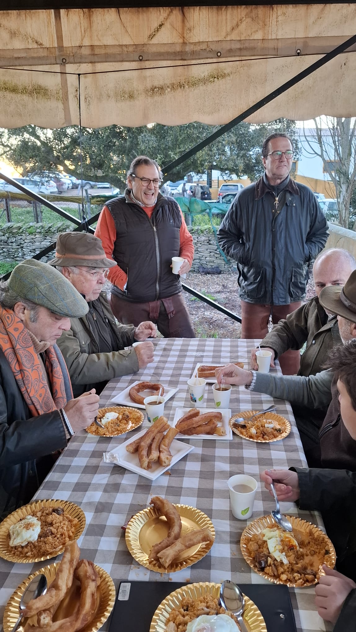 A las tres de la tarde se dio por concluida la montería y mientras los monteros degustaban un reconfortante almuerzo, el personal de campo de Extremeña de Monterías dirigido por Leoncio y Enrique se empleaban a fondo recogiendo los 45 jabalíes, 19 venados y 2 gamos que se abatieron durante la jornada.