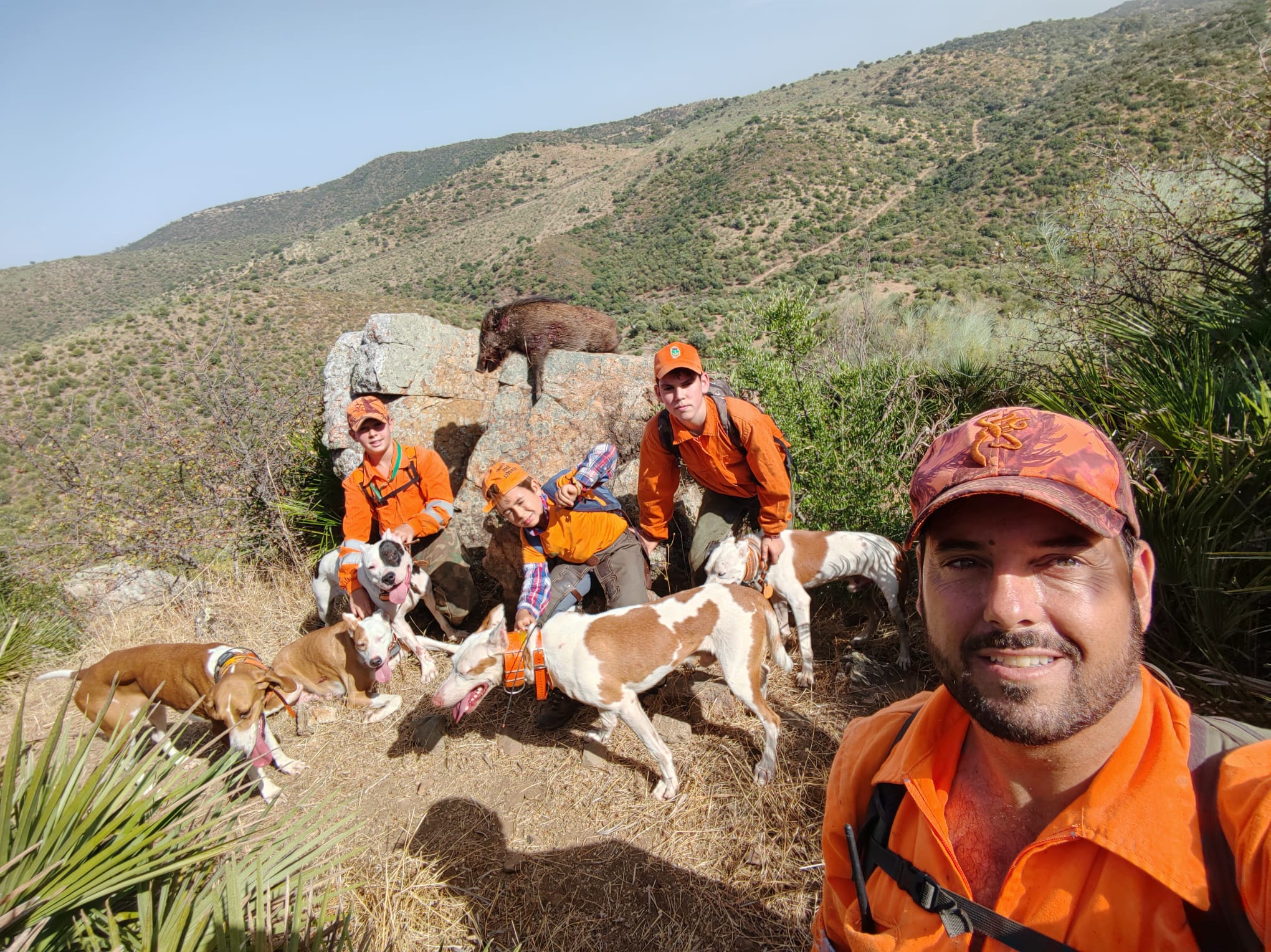 Tampoco lo pasó mal el nº7 de esta armada. Desde esa fantástica atalaya vio gran parte del monteo y como las rehalas guiadas por José Antonio “Forraje” batían palmo a palmo aquel profundo barranco levantando mucha caza. Fruto de este trabajo fue la piara de 6 lechones que le entraron a tiradero, dejándolos pasar con buen criterio, y los dos primalones que se fueron de rositas tras las dos salvas de recibimiento que les soltó el montero. Una cochina pagó posteriormente los platos rotos e inauguró la casilla del cazador esta temporada.