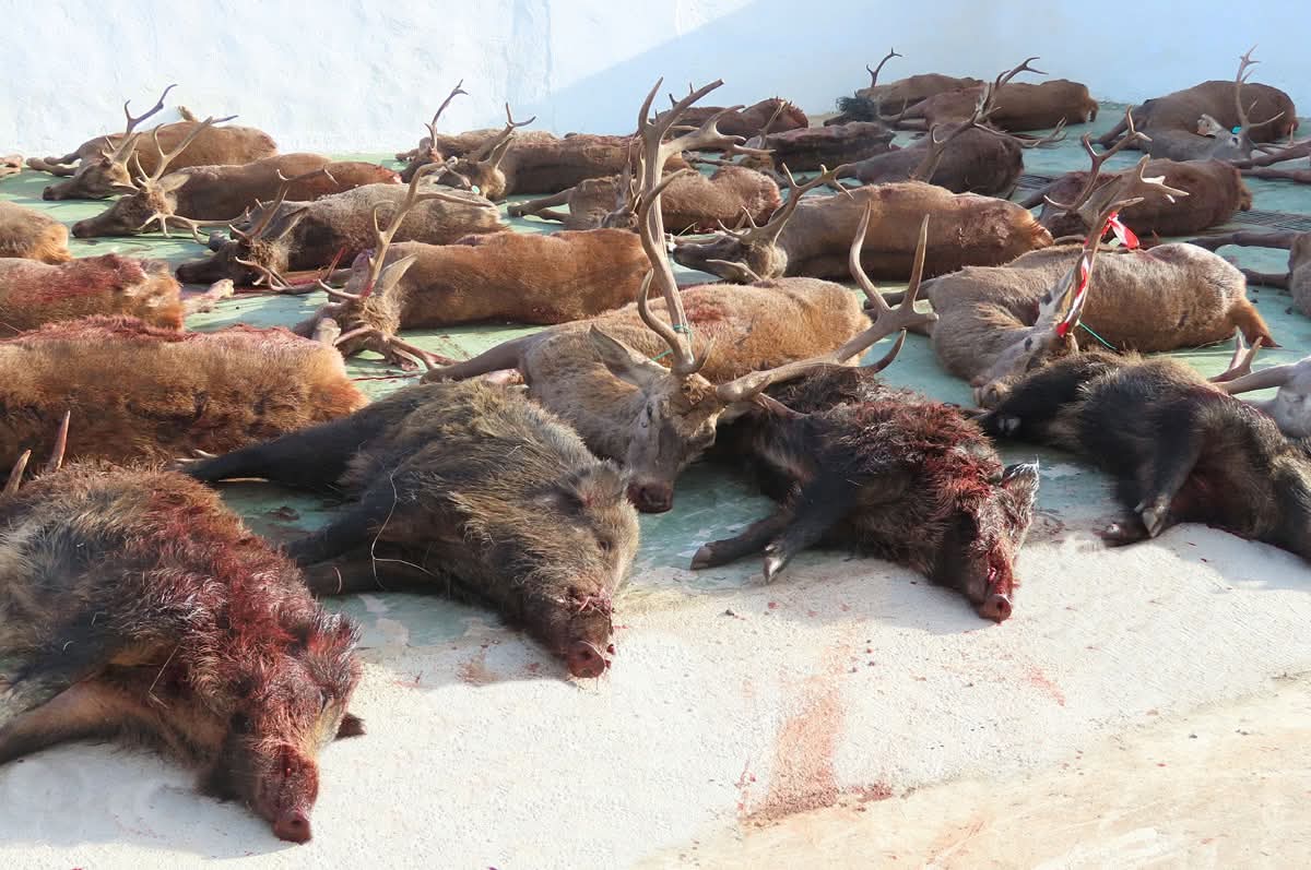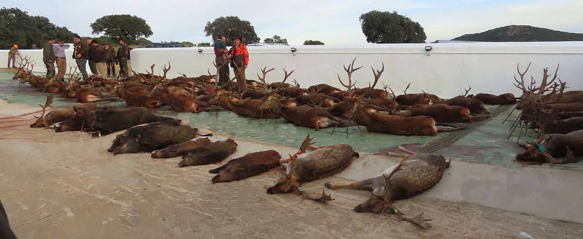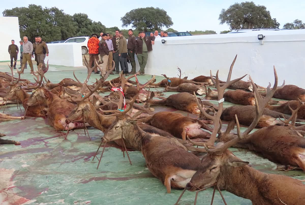 Sorteo rápido, colocación pronta y correcta de las posturas y perros en el monte a las 11:00 h en punto para empezar un auténtico festival de lances que se tradujo en casi 350 carreras y un platel de 49 venados, 12 gamos, 15 jabalíes y 85 hembras, entre los que había una quincena de venados de bonita envergadura, media docena de gamos rozando o metidos en metal y 4 navajeros. Todo un espectáculo.