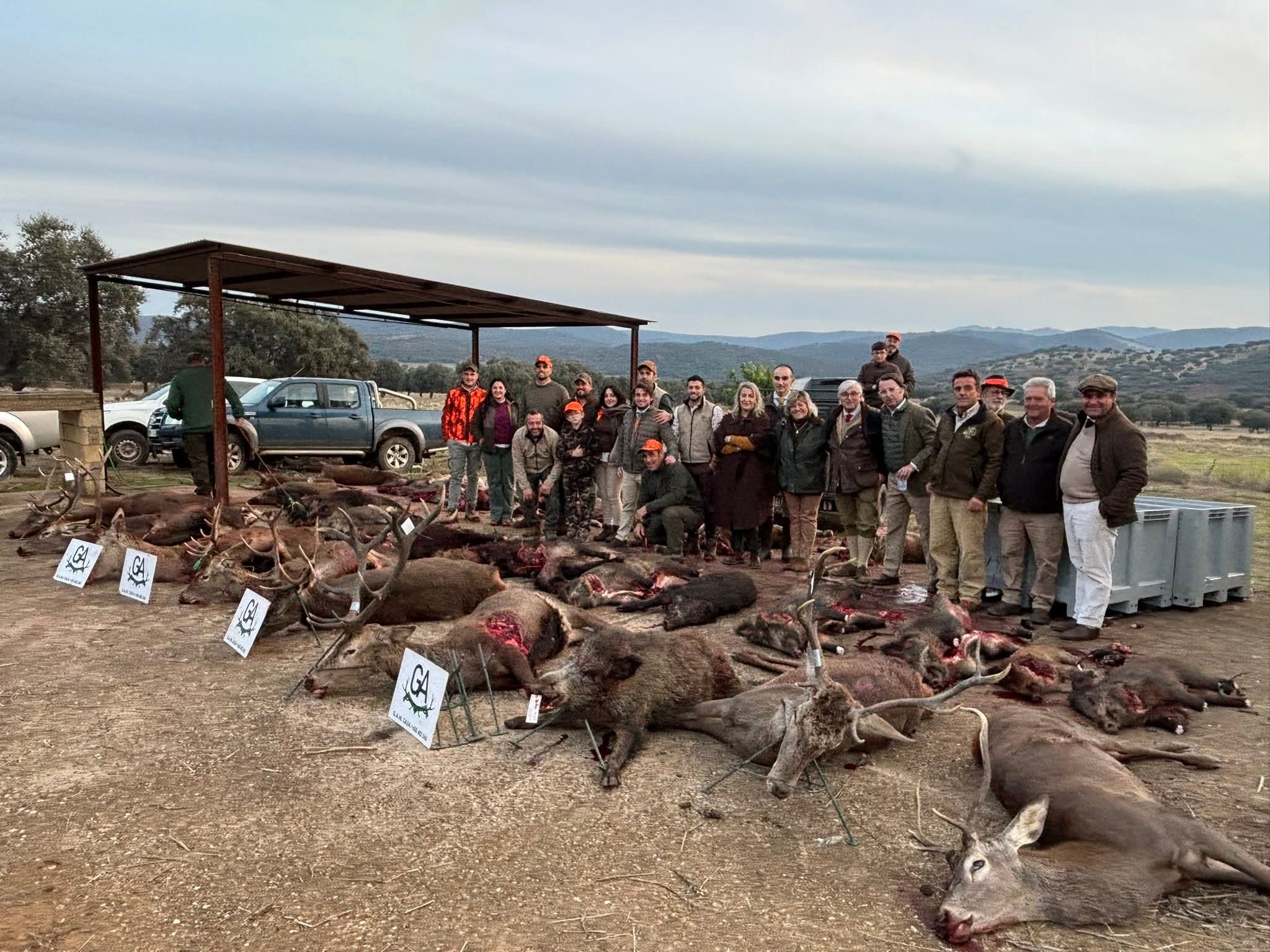 La montería cumplió con creces las mejores expectativas. Se cobraron 8 venados, entre ellos un medalla que acaparó las miradas por su porte elegante y su hechura imponente. La sorpresa de la jornada llegó de la mano de los guarros: 17 jabalíes, destacando un macareno de gran tamaño, duro, astuto, de los que dejan huella en el recuerdo del montero que lo encara.