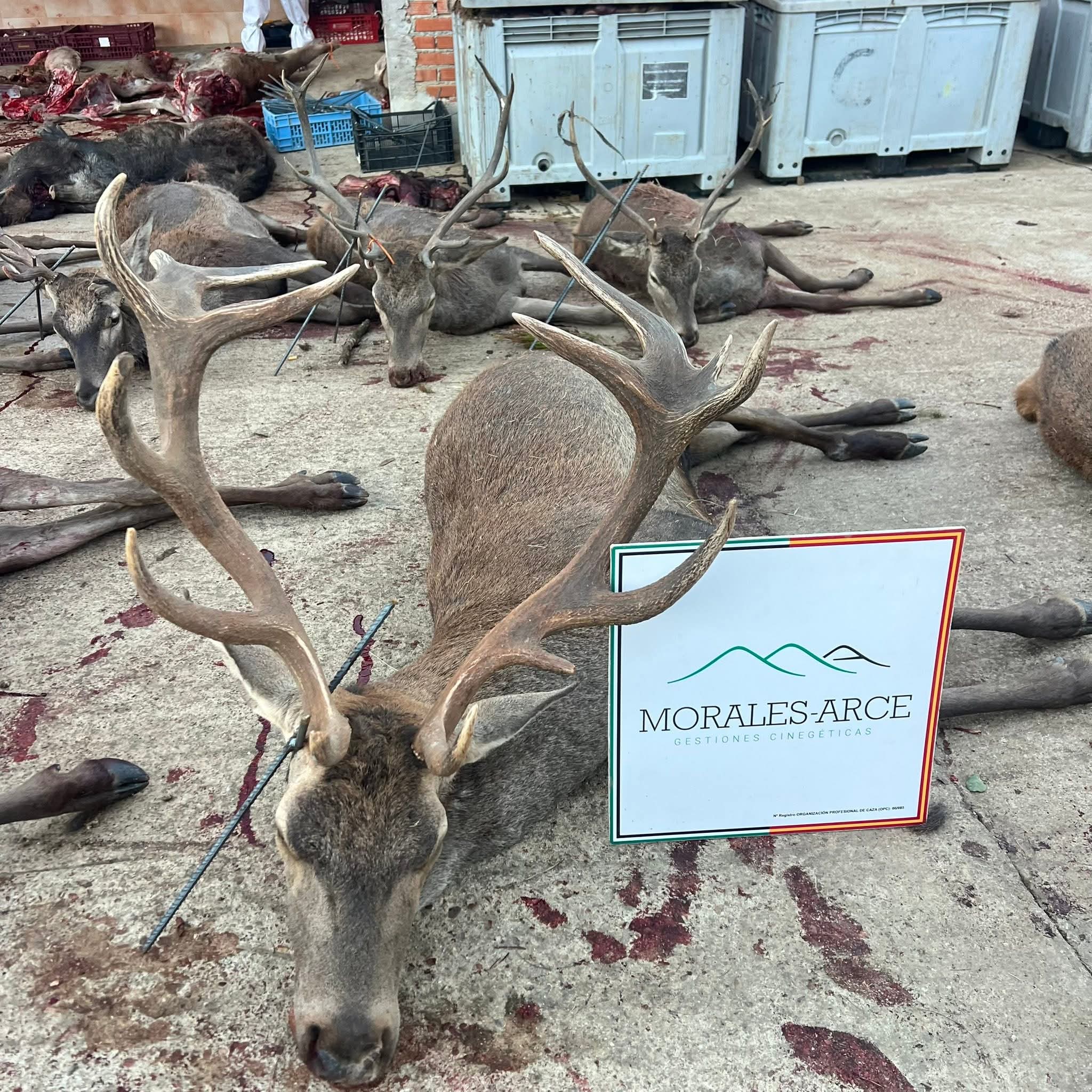 Resultado final después de aparecer un venado esta mañana: 18 venados (uno para medir + otro bonito de montería), 21 jabalíes de tiro + 3 de agarre, con 7 navajeros, y 10 ciervas de gestión.