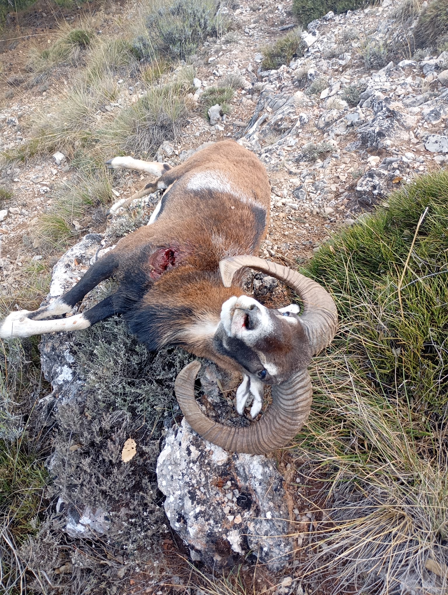 Los muflones no tardaron en aparecer por los puestos de la cuerda del Pico de los machos, abatiéndose bonitos ejemplares, sobre todo el cobrado en el puesto nº7 de dicha armada, que ha dado ORO con la medición en verde.
