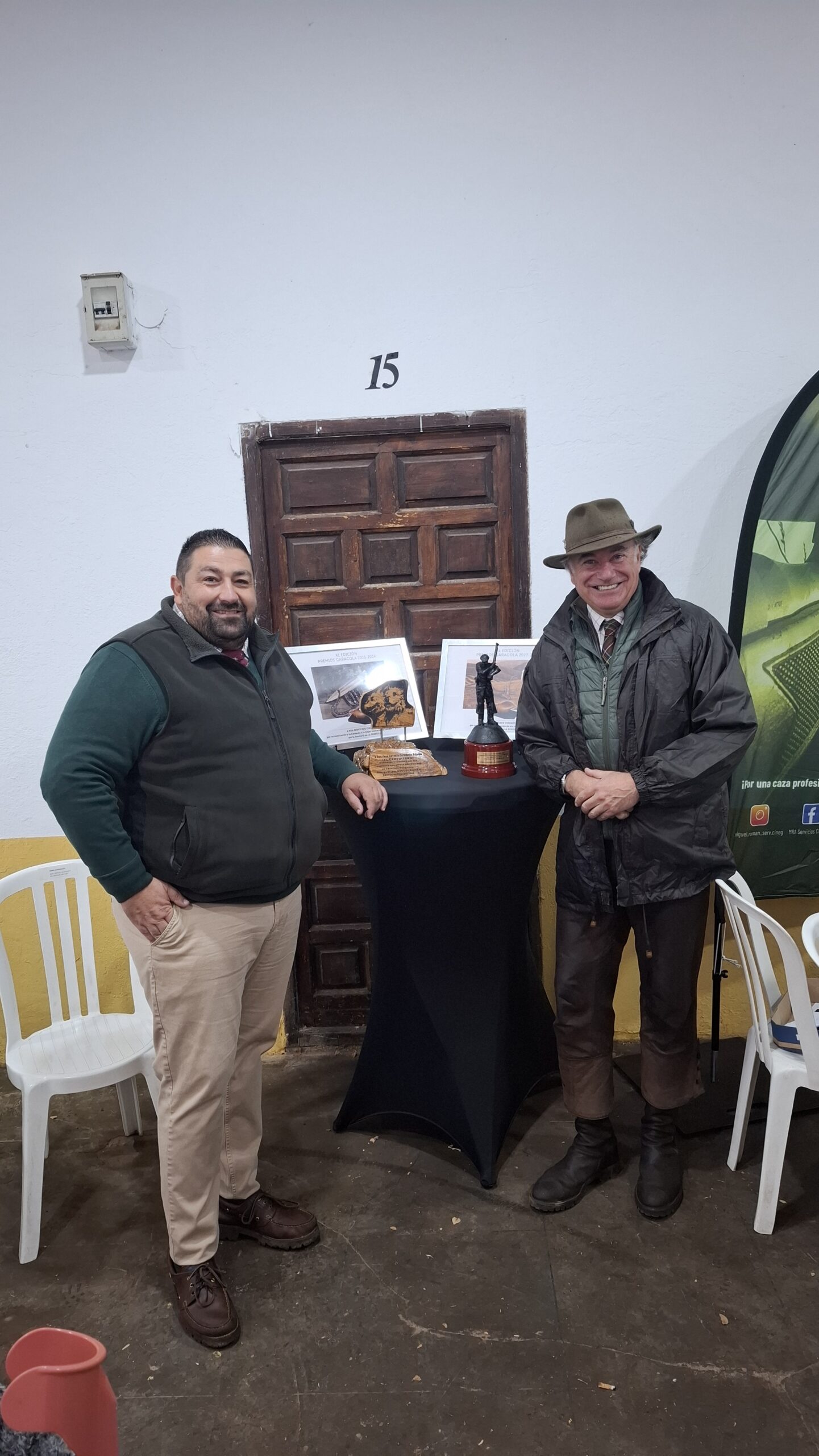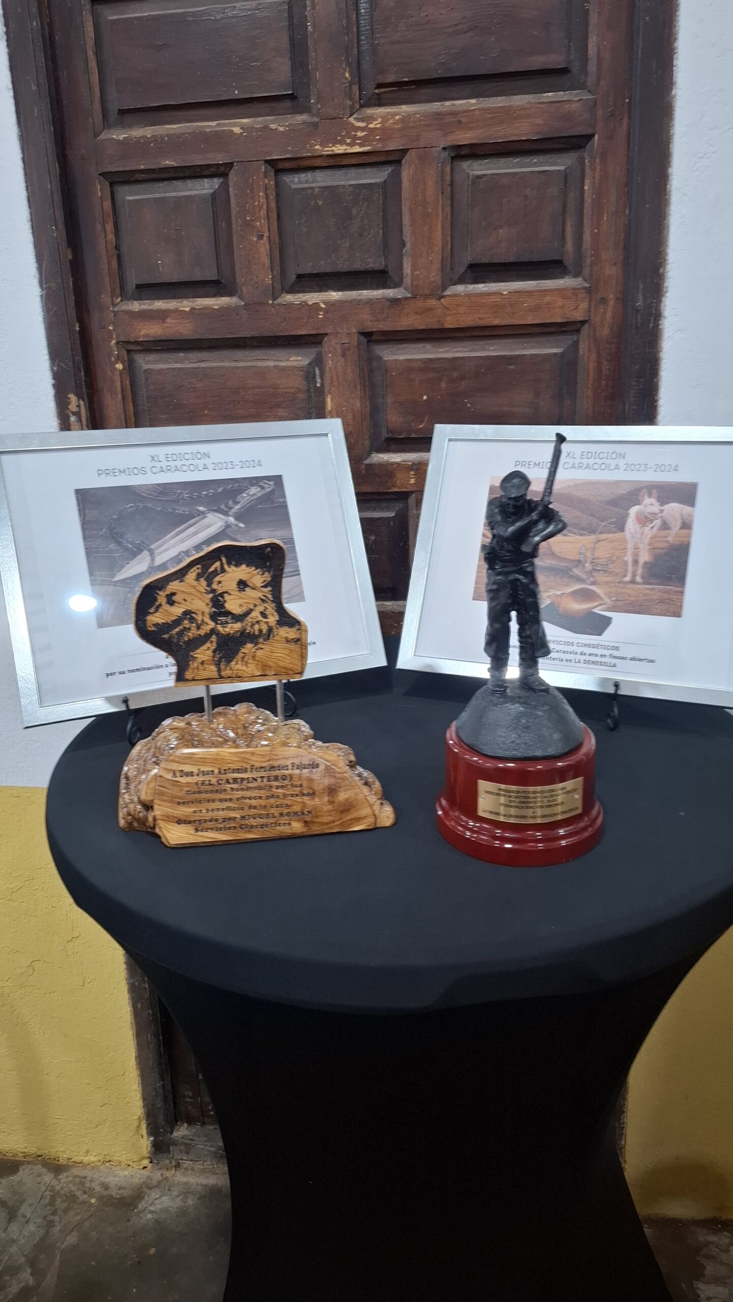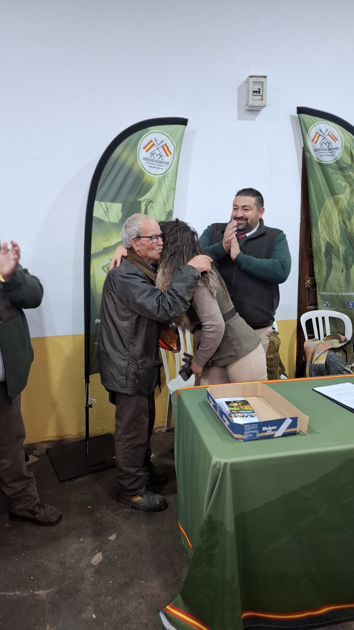 Pero hoy era un día especial para la organización, y no sólo por ser la primera montería de la temporada, sino porque además se le iba a dar un homenaje sorpresa a uno de los rehaleros más veteranos y carismáticos de este país, que tras una vida dedicada al mundo de la rehala y la montería sigue a pie de monte ejerciendo su magisterio, y haciéndonos disfrutar del trabajo de sus perros: el gran Juan Antonio Fernández Fajardo “El Carpintero”, Catedrático de Sierra y Maestro de maestros, que tras unas bonitas palabras de Mª Victoria, esposa de Miguel Román, recibió de este un bonito trofeo como muestra del aprecio y consideración de todos los monteros, rehaleros y de esta organización, que cuida al máximo los detalles, como podemos comprobar. ¡Enhorabuena Juan Antonio! Reconocimiento más que merecido. Y para la organización, otro 10. Estos detalles son los que diferencian a los buenos de los mediocres.
