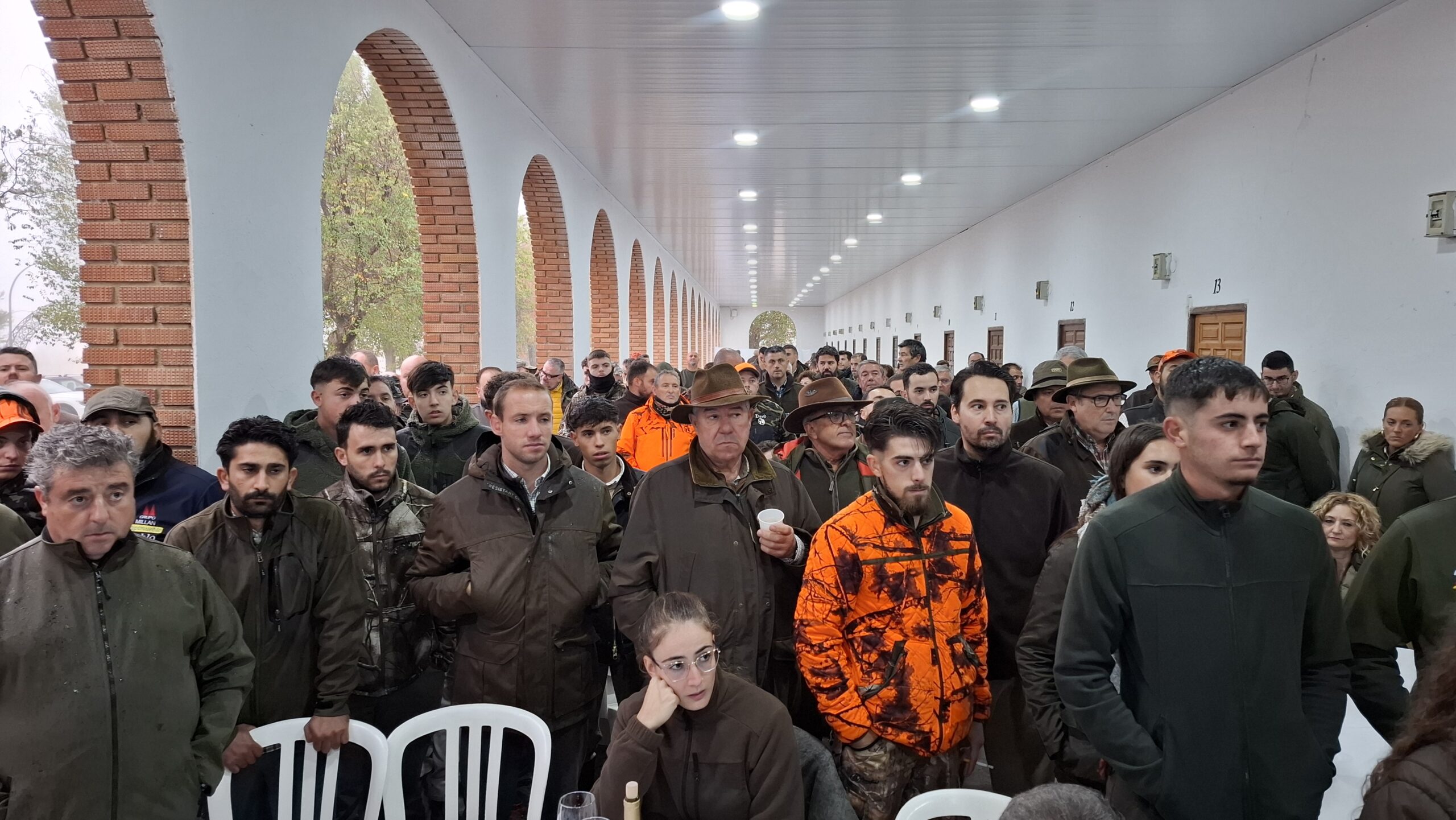 Los monteros que ocuparon los 70 puestos que cerraron la mancha fueron convocados a las 7:45h en el Santuario de Ntra. Sra. de los Desamparados, en Villanueva de la Fuente, ubicación que se envió la tarde anterior a última hora dada la previsión de lluvias que ponían para el domingo. ¡Y menudo acierto!, pues durante el desayuno y sorteo cayó una manta de agua de las que te pones calado hasta los huesos si te coge fuera de cobijo.