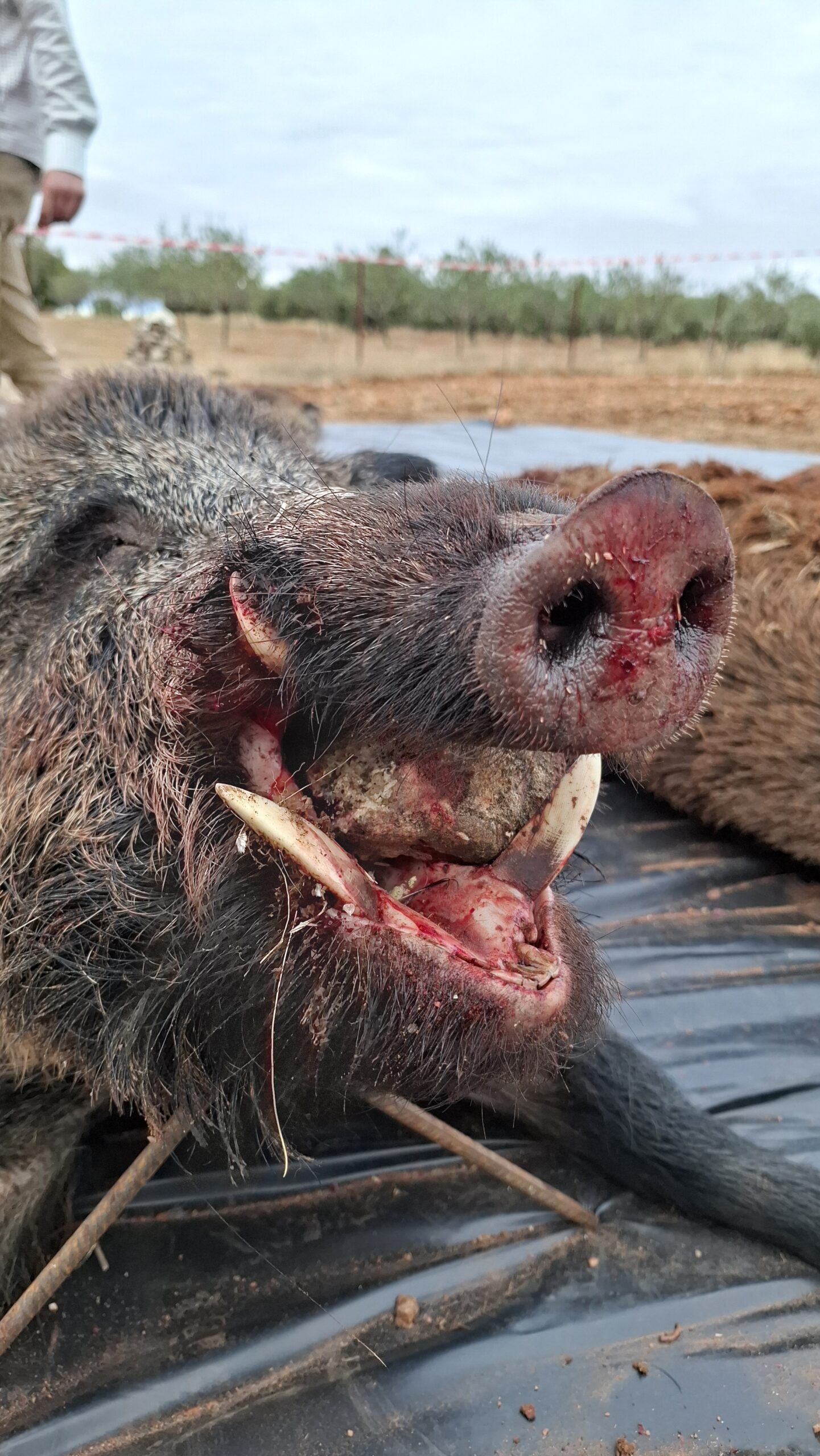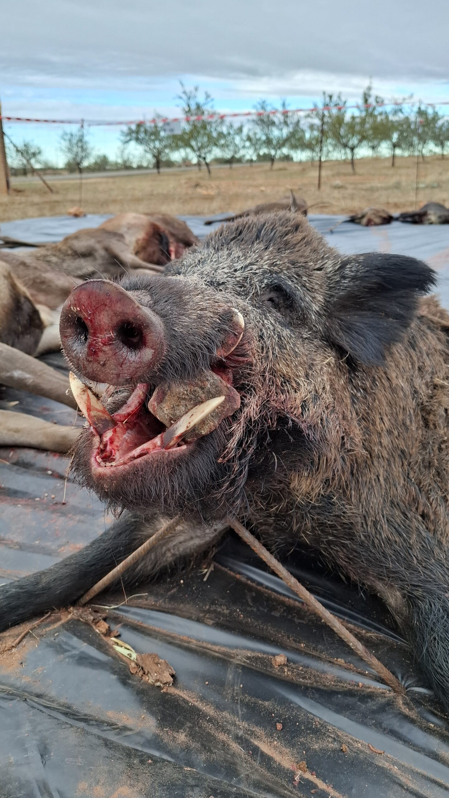 En jabalíes hubo nada menos que 8 navajeros, de los que 2 se van a meter posiblemente en metal y otros dos destacaron por la aparatosidad de su envergadura corporal, hasta el punto de que uno de ellos será naturalizado entero para exponerlo en ferias y eventos cinegéticos por la Taxidermia Vázquez.