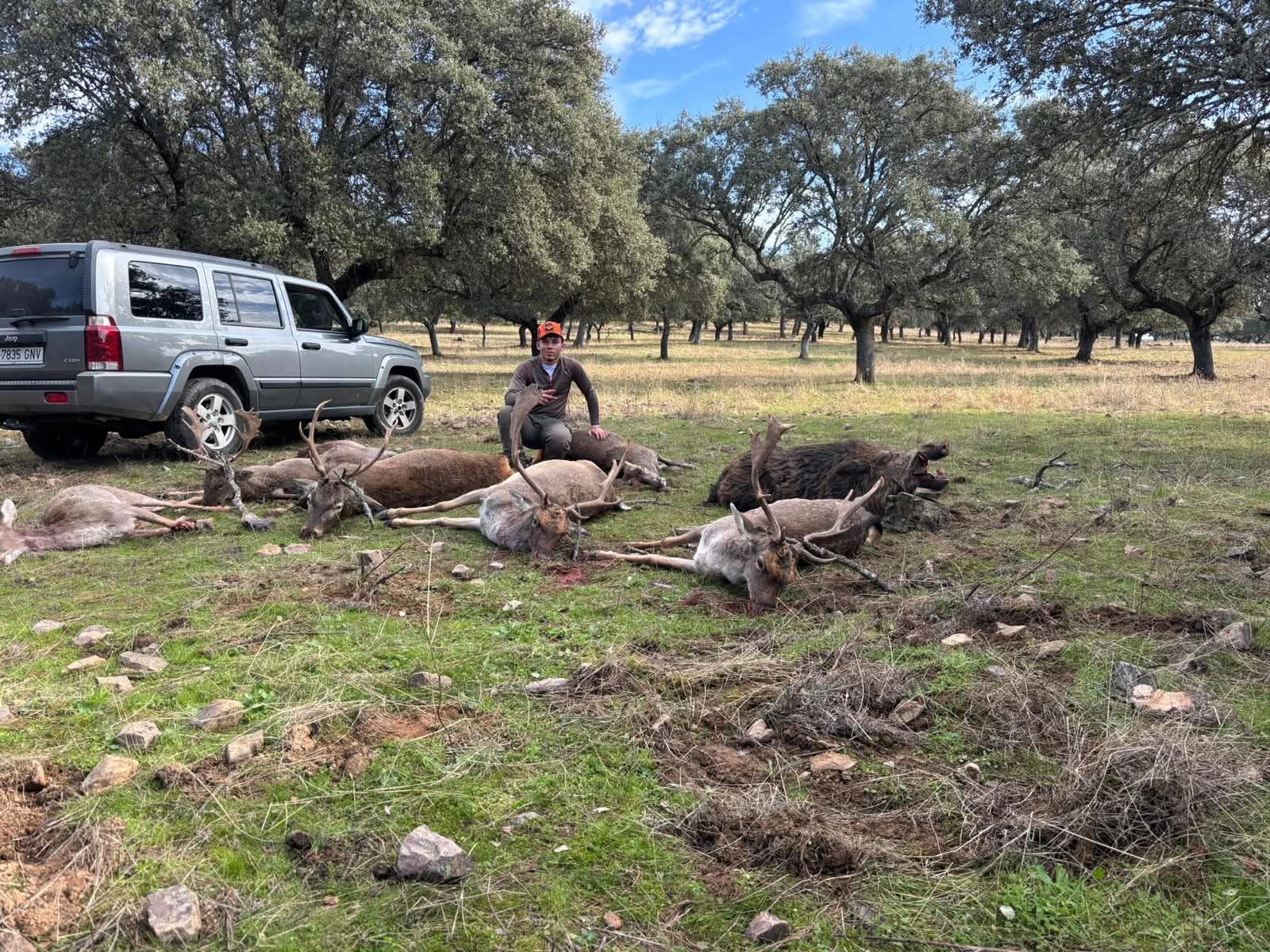 Por ello, debemos de agradecer y aplaudir a gente como Félix, Jesús, Julio, José, José María…, siendo todos ellos auténticos máquinas y conocedores del campo a la perfección. Y lo mejor su calidad humana. Y como no, a la propiedad de la finca, que nos ha tratado como en nuestra casa, a la guardería de la finca, siempre dispuesta para ayudar en todo para que todo saliera a la perfección, a la gente de campo como postores, rehalas, arrieros, y así un sinfín, que son de verdad los protagonistas de este gran día. ¡¡GRACIAS!!