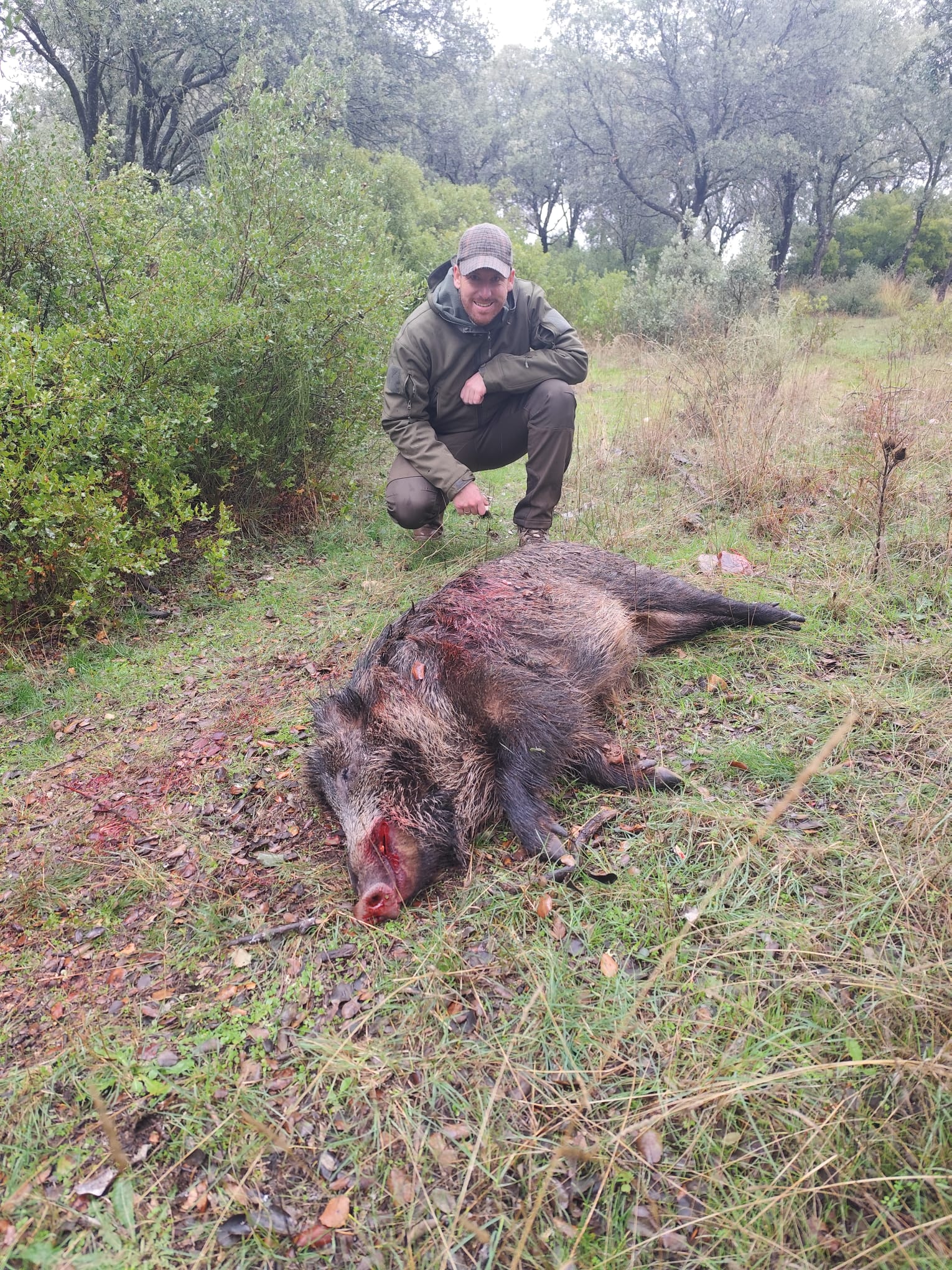 Los puestos terminaron helados y se cortó la montería a las 15:00h. Una pena que la lluvia no diera tregua y que el frío castigara como lo hizo, pues de haber tenido mejor tiempo se abate el doble de caza. Aún así hubo puestos sobresalientes que abatieron hasta 6 jabalíes, y otros muchos que hicieron doblete.