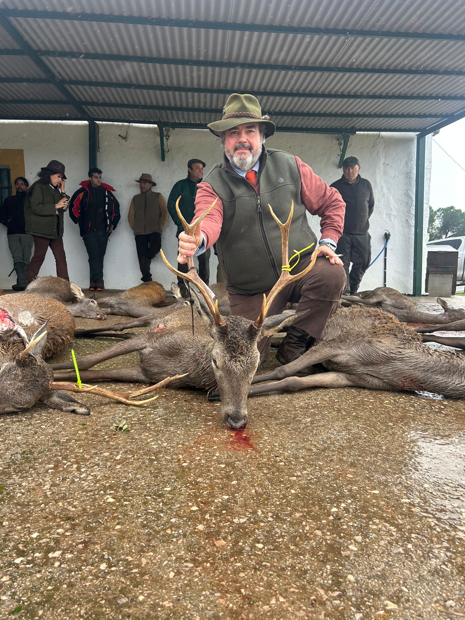 En primer lugar por el excelente trabajo de propiedad, guardería y organización en la preparación de la mancha para devolverla al estatus y al lugar que se merece, y que no es otro que el de posicionarse como una de las tres mejores monterías de venados en abierto de España. Y aquí tenemos que darle la enhorabuena a Álvaro y familia, propietarios de la finca, por el cariño y la pasión con el que preparan la montería de su casa, a Lolo el guarda y Marisol, su mujer, por dejarse el alma cuidando la mancha 365 días al año, y a Javier Rodríguez Torrecilla y Jorge Cardador (Pelillo SC), por apostar fuerte y en firme por esta mancha y darla en la fecha indicada a pesar de las amenazantes lluvias que daban para ese día en gran parte de España y que hicieron suspender multitud de monterías.