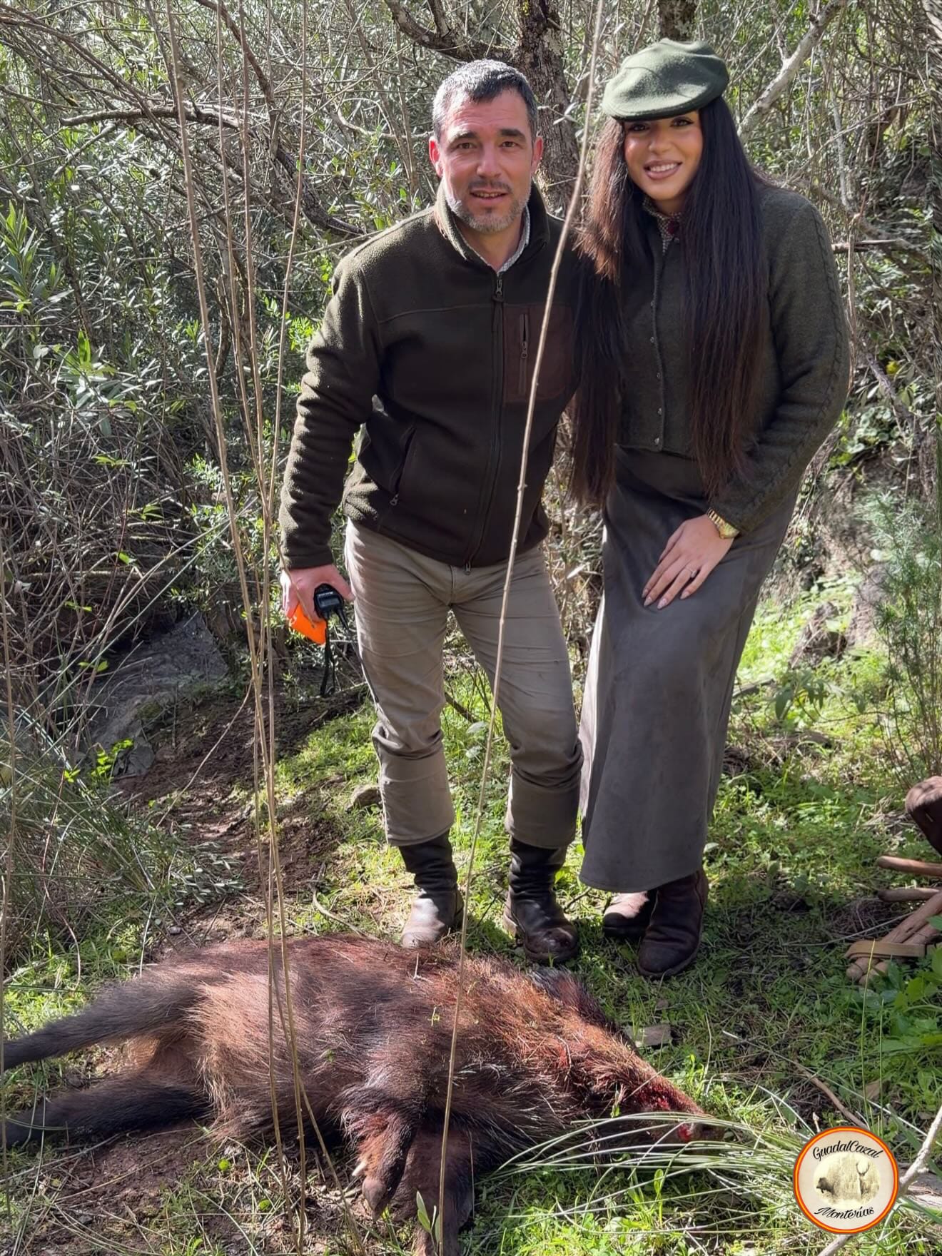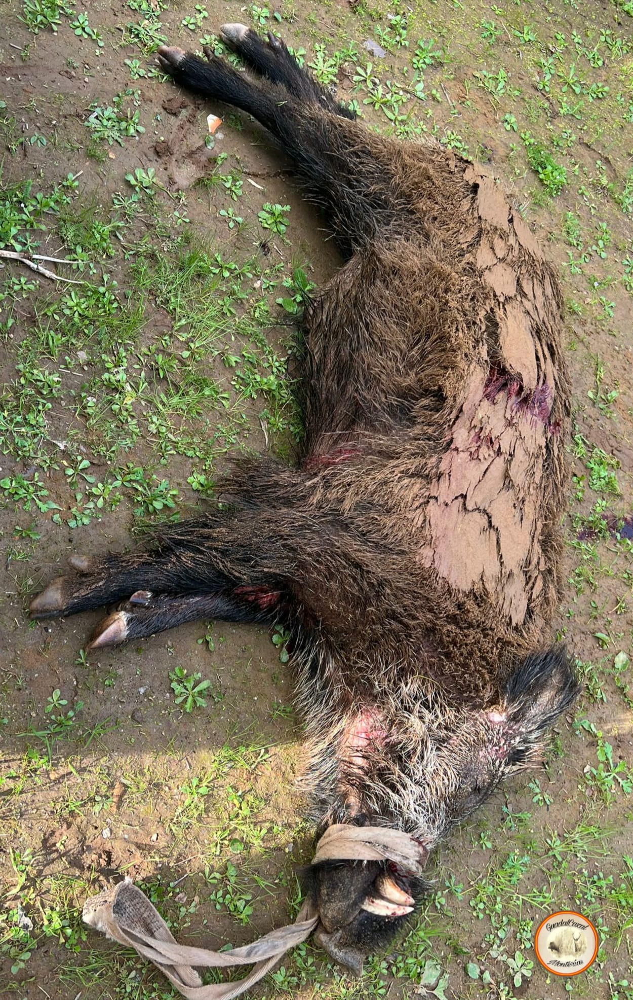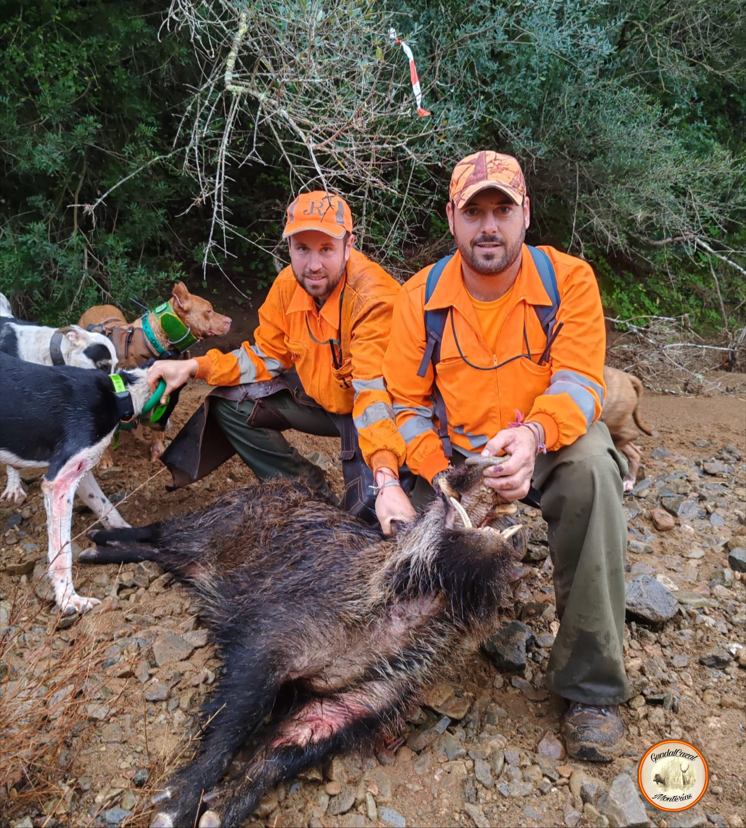 Y entre tanto, monteros que a la hora de estar puestos ya tenían el cupo de cochinos hecho, como Nuria y Pepe, que a las 12:30h ya lo tenían cubierto, abatiendo un bonito navajero y dos enormes cochinas, sorprendiéndolos por su tamaño, y viendo un sinfín de cochinos pasar luego por la postura.