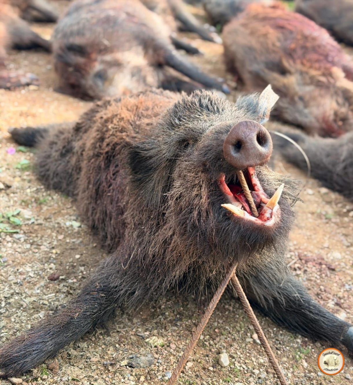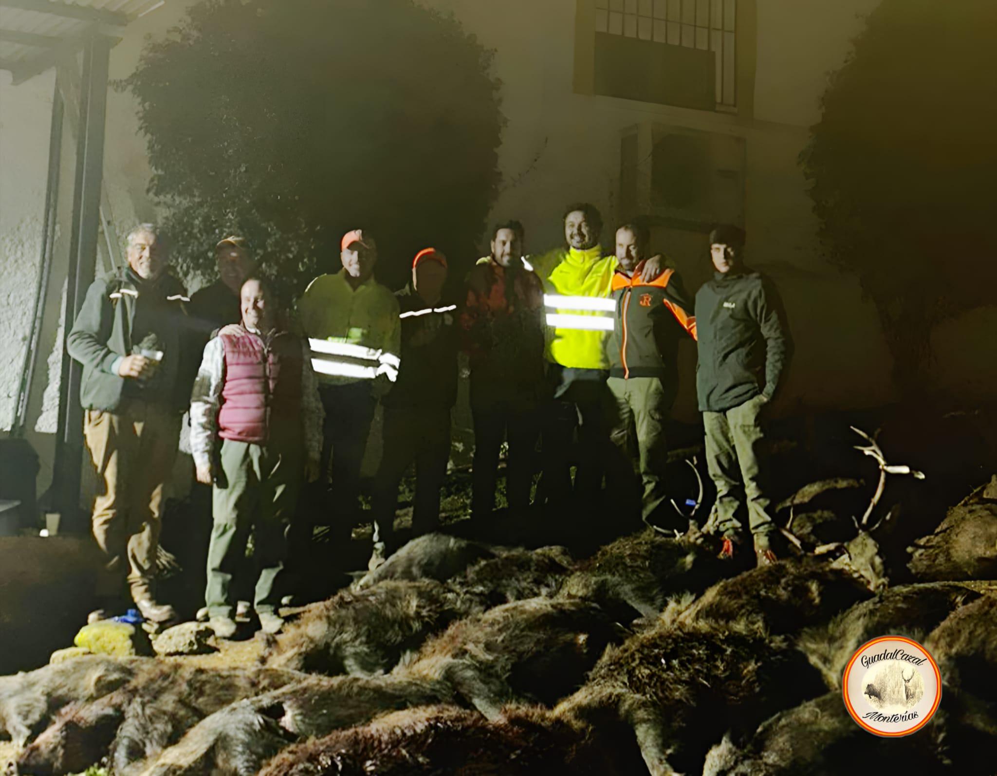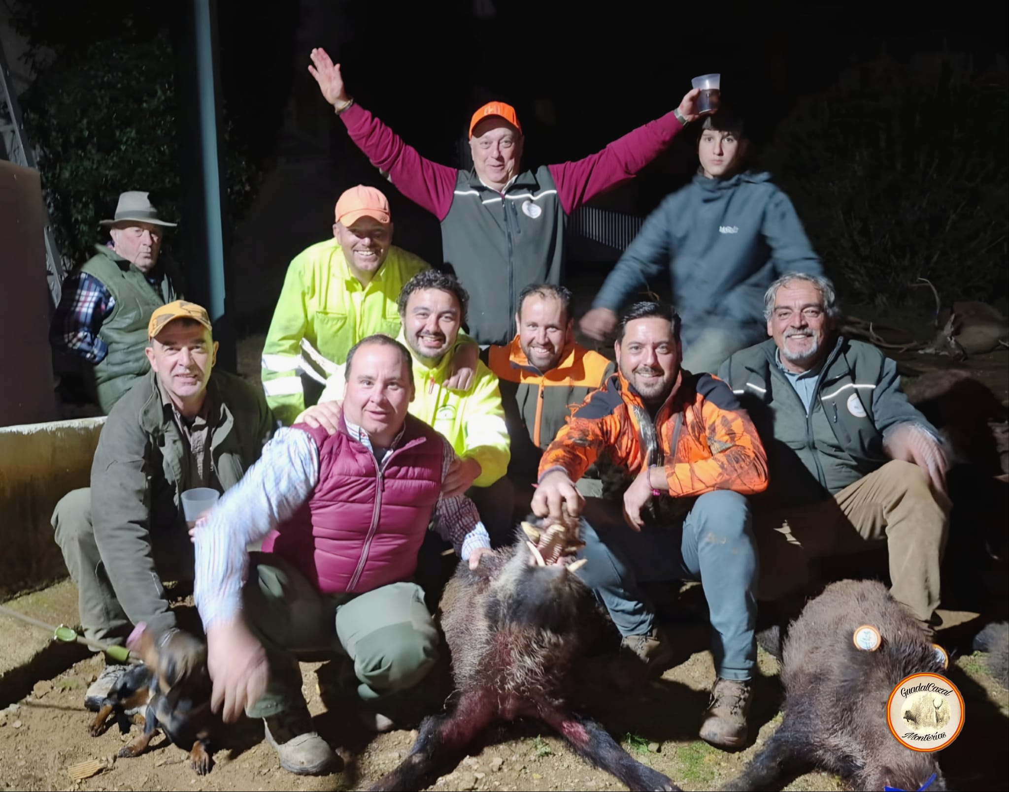 Y entre tanto, monteros que a la hora de estar puestos ya tenían el cupo de cochinos hecho, como Nuria y Pepe, que a las 12:30h ya lo tenían cubierto, abatiendo un bonito navajero y dos enormes cochinas, sorprendiéndolos por su tamaño, y viendo un sinfín de cochinos pasar luego por la postura.