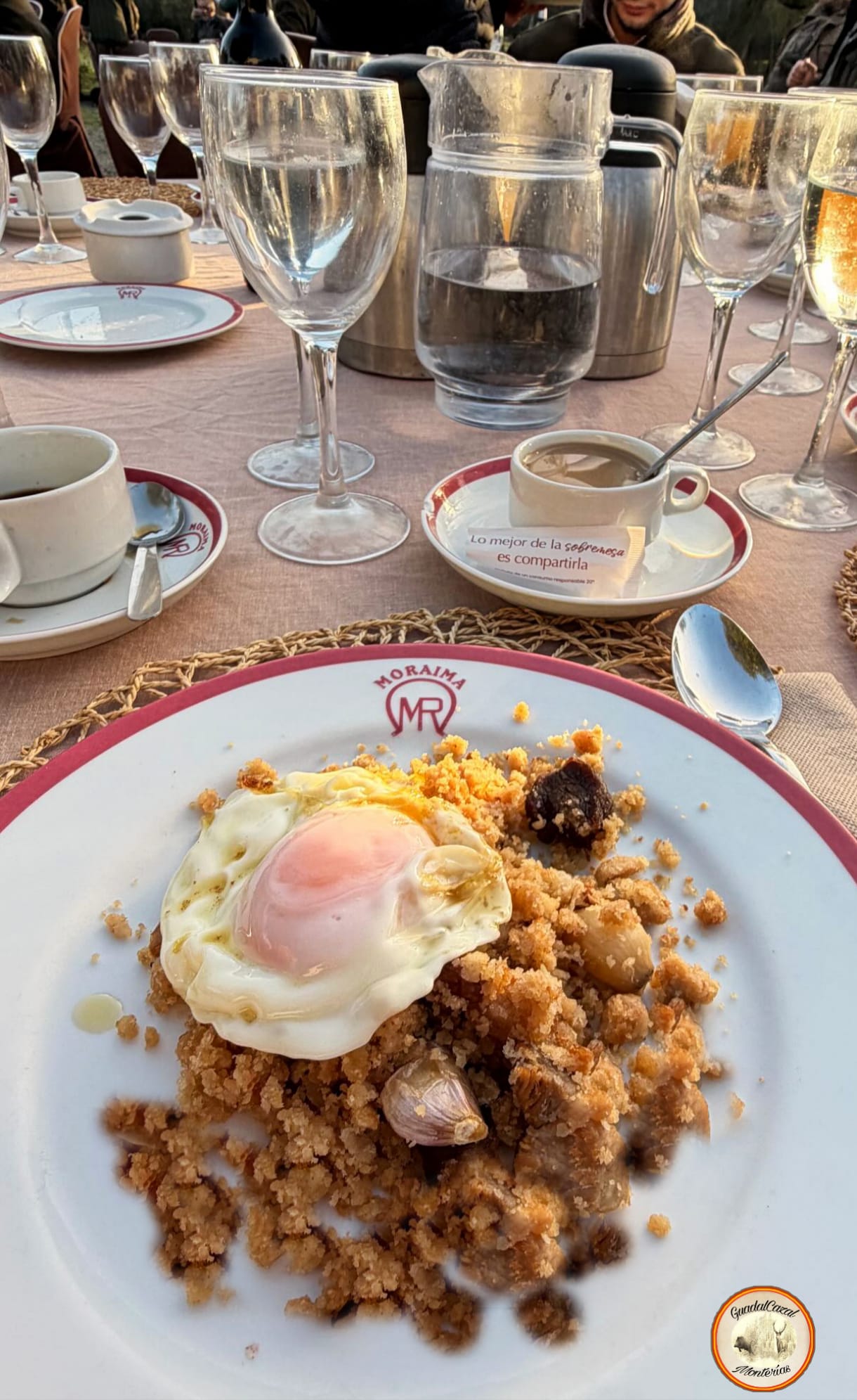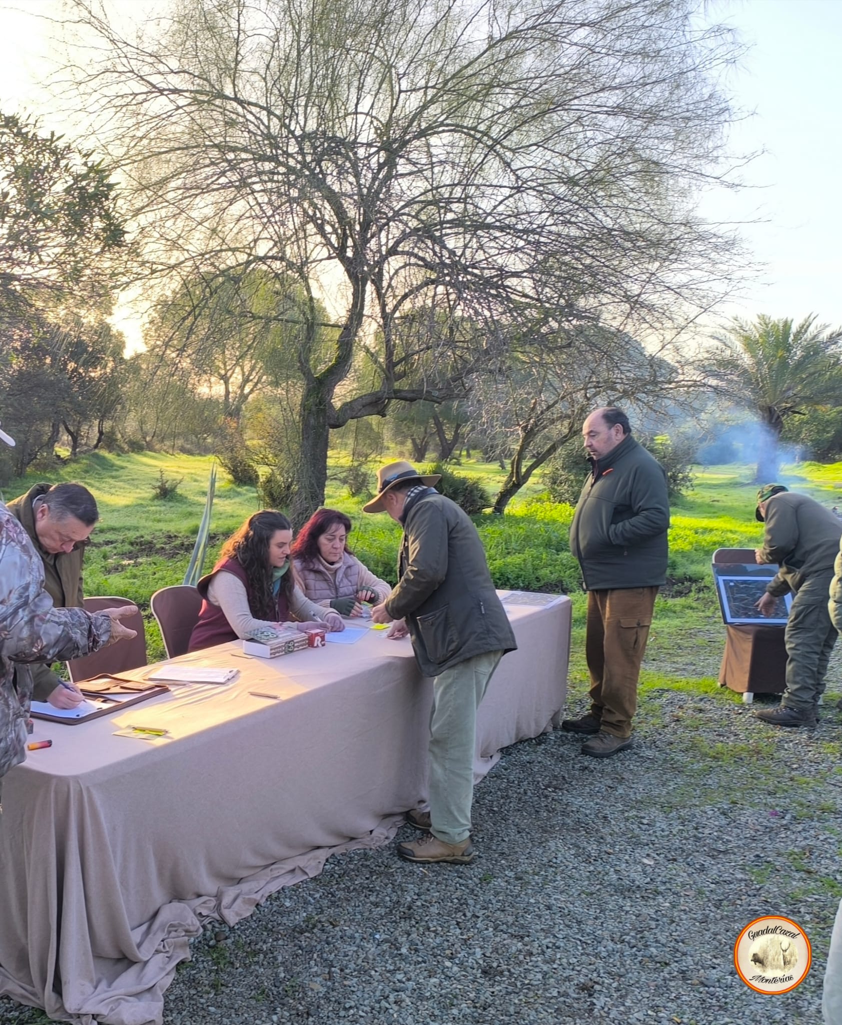 En el precioso cortijo de la finca lindera, fueron recibidos los asistentes a este magno ojeo para sortear y degustar un rico desayuno montero. Allí, en un extraordinario ambiente, el catering Moraima tenía preparadas unas migas exquisitas servidas por su magnífico equipo de camareros y camareras. El sorteo, como es habitual en esta orgánica, se realiza al llegar el montero, cogiendo su papeleta, para acto seguido, pasar a desayunar, cumpliendo la orgánica escrupulosamente la hora de comienzo, no pudiendo coger la papeleta de puesto antes.