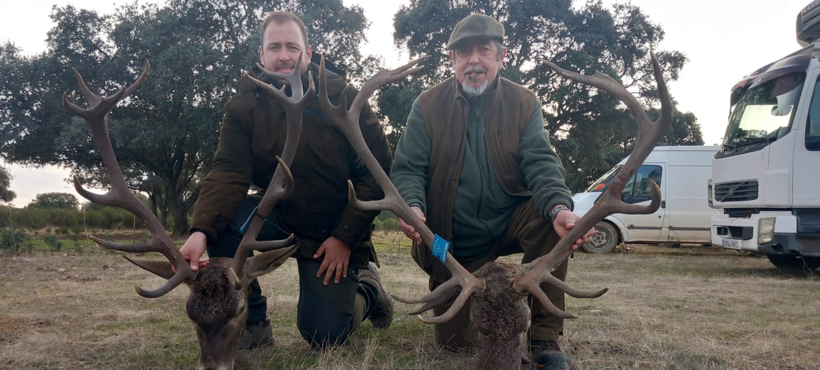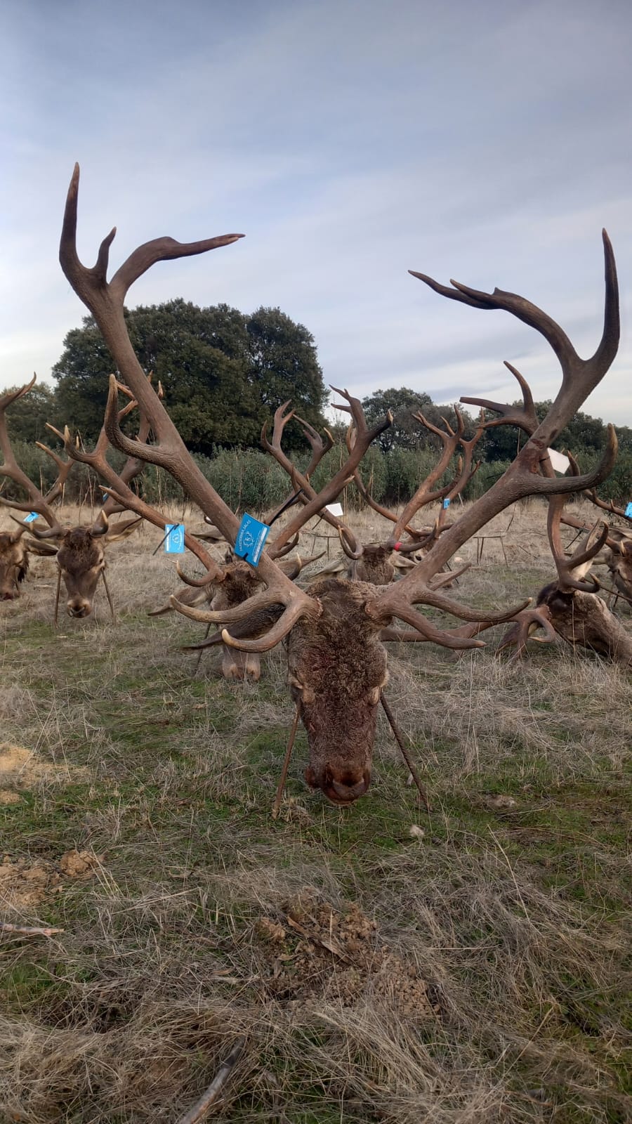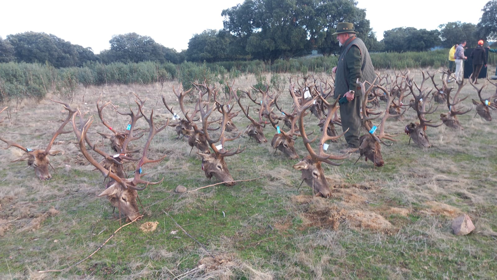 Día magnífico para el monteo, mañana trepidante de carreras y lances y un plantel que habla por si solo: 51 venados, 8 gamos y 2 jabalíes entre los 28 puestos, que a cupo de 2 machos se batían hoy el cobre con las reses montunas de este afamado coto.