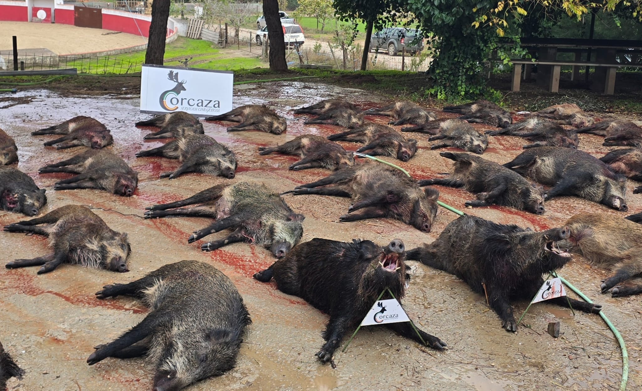 Los cochinos dieron juego, con carreras, testeros y agarres espectaculares. A las 13:50h comenzó la recogida de perros, poniendo fin a una montería auténtica, animada y muy disfrutada por todos. El plantel final dejó 43 cochinos, entre ellos dos grandes navajeros que destacaron por sus imponentes defensas.