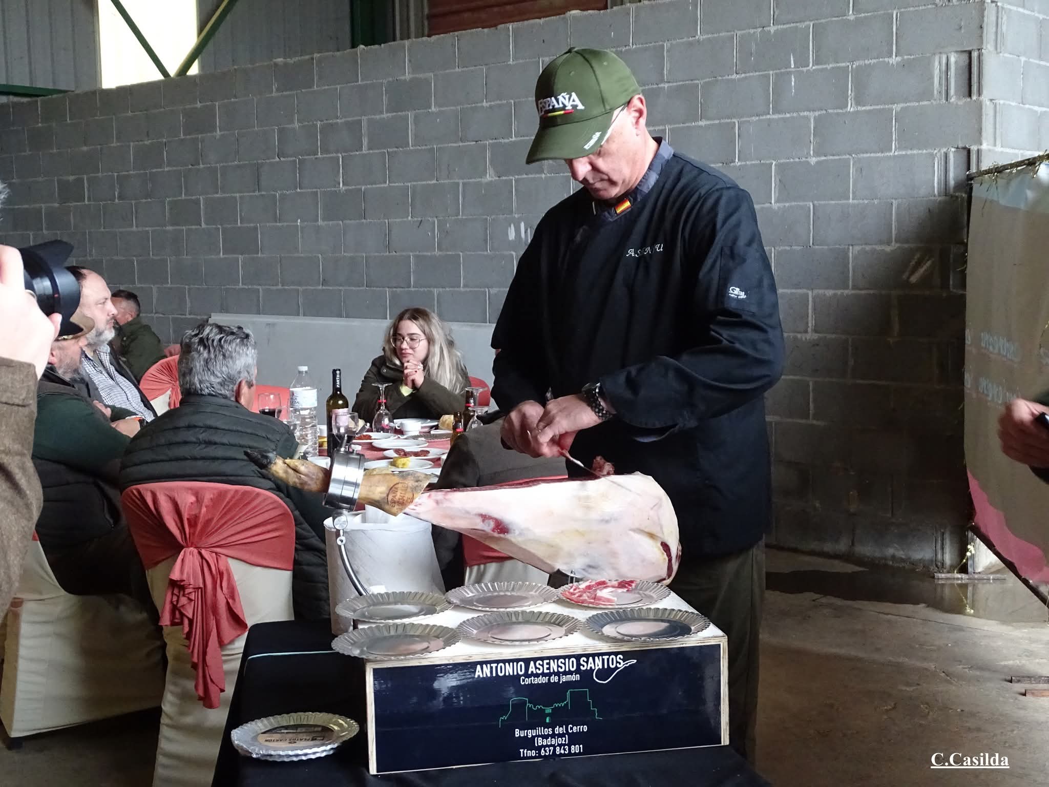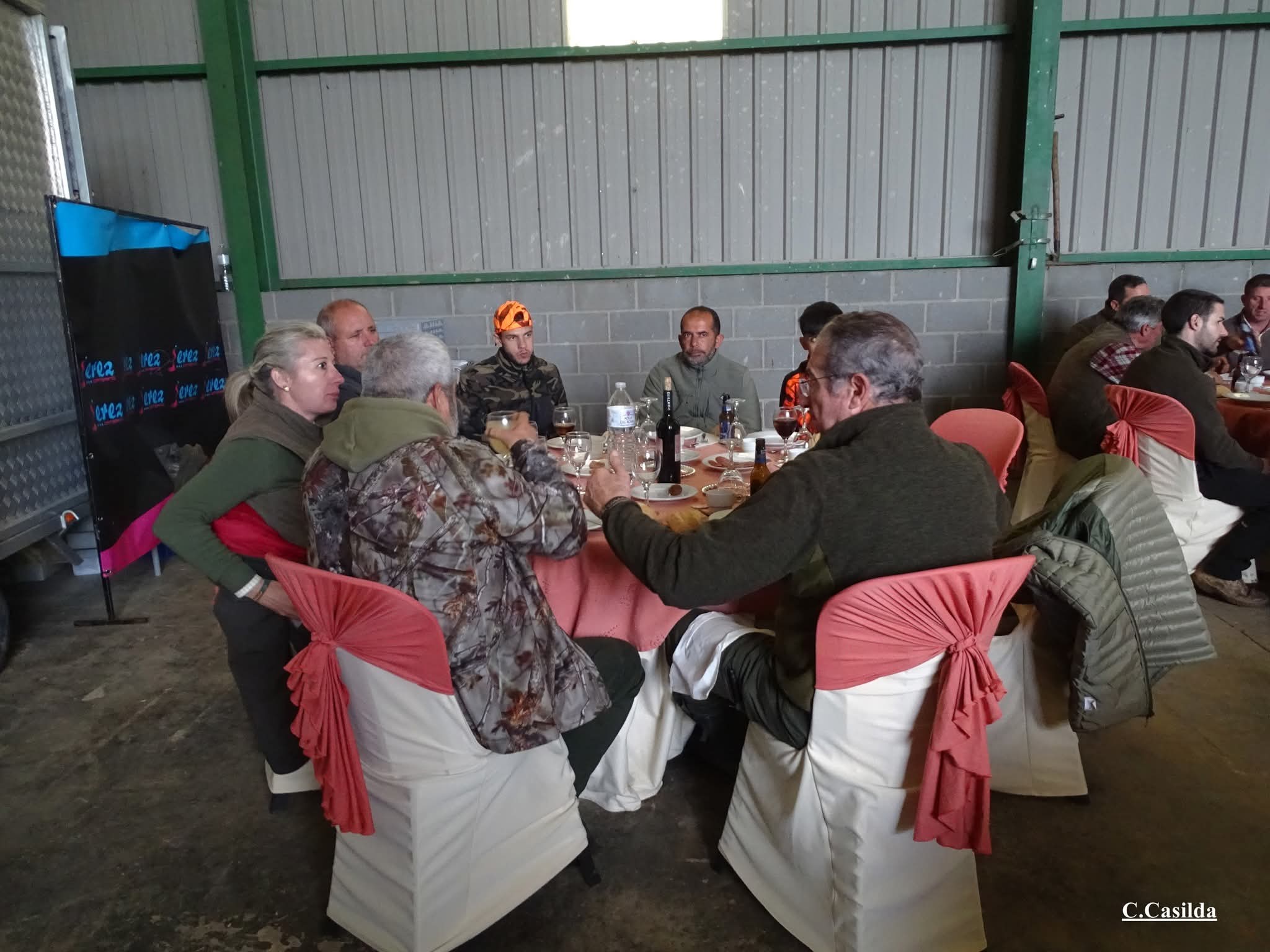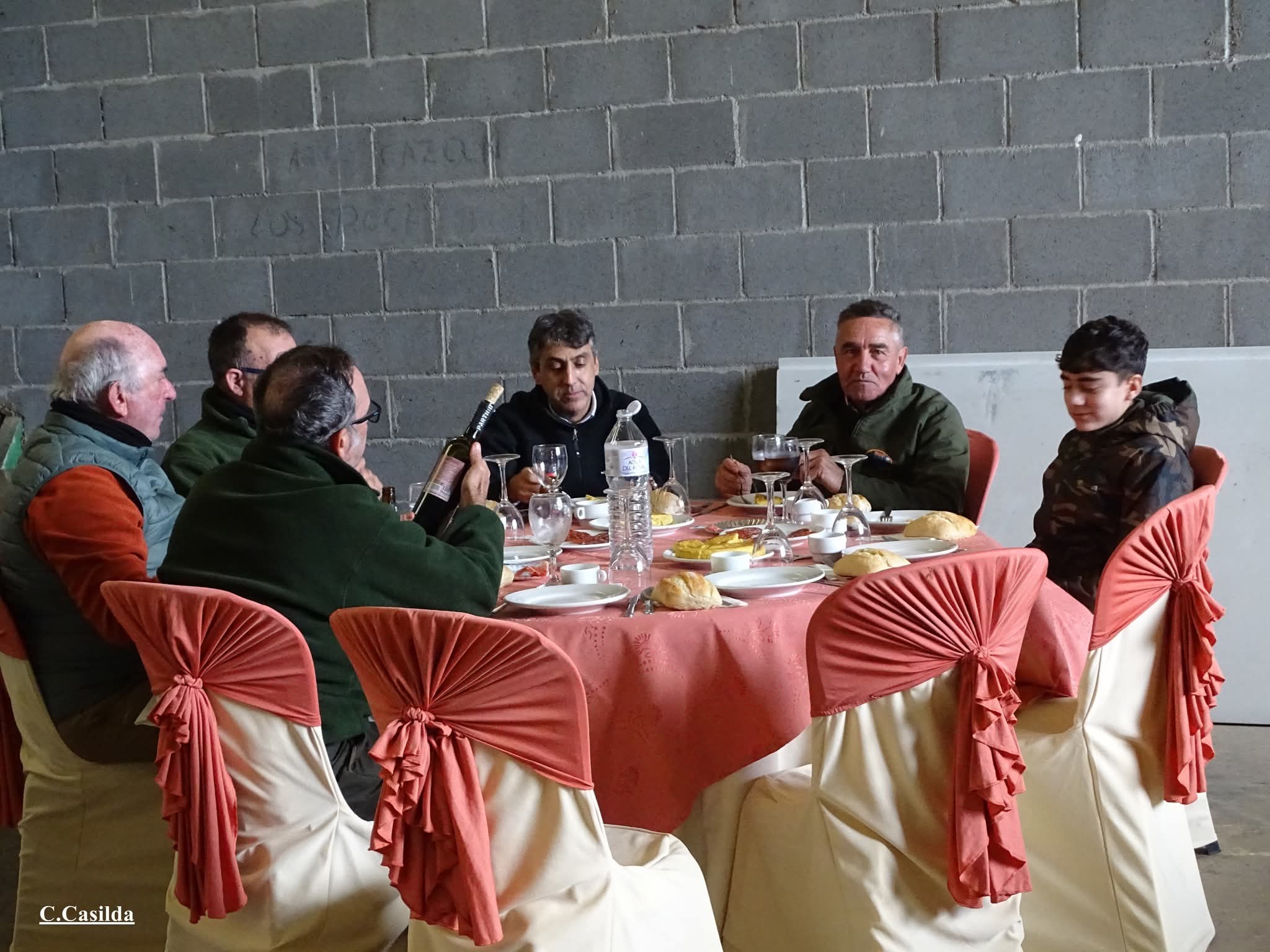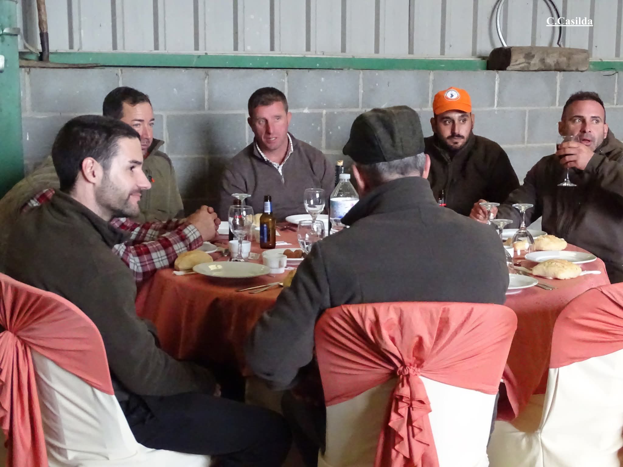 Magnífico catering mientras la organización se esforzaba por sacar de la espesura del monte los 38 jabalíes que se habían abatido.