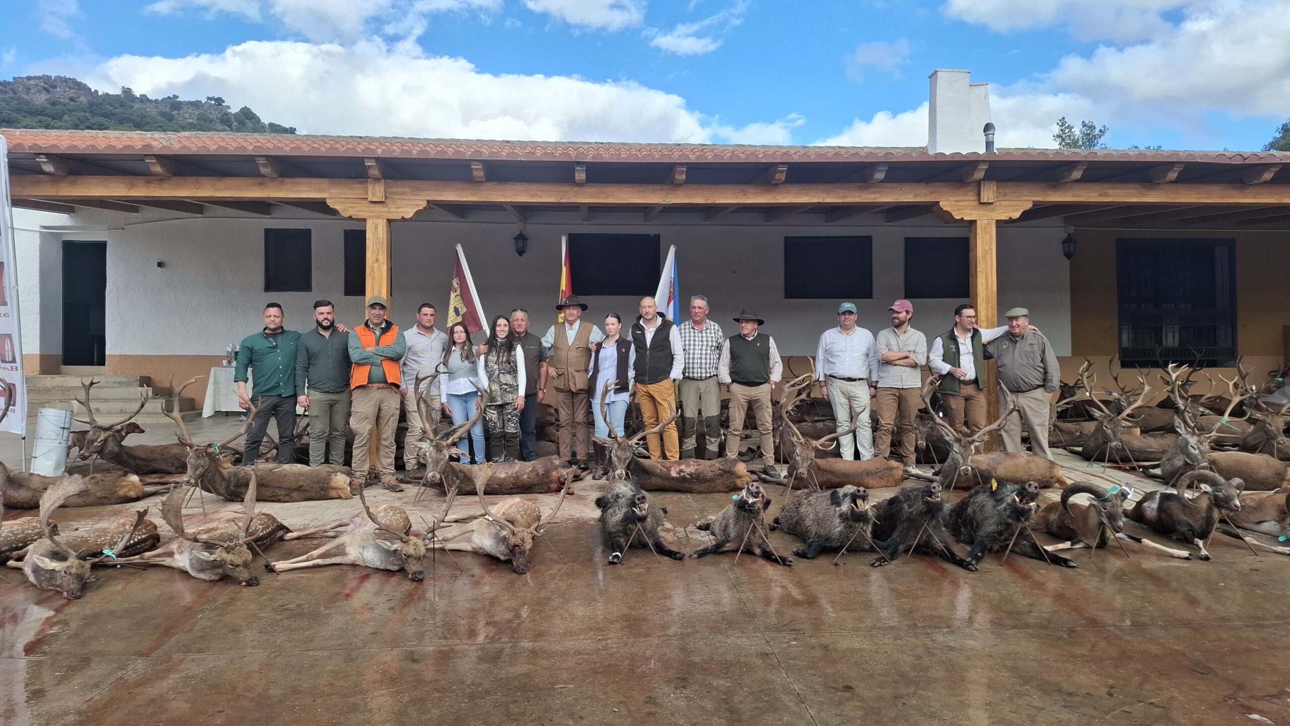 Una buena comida, (magnífico catering), la imposición de insignias a los monteros más destacados de la jornada por parte de la alcaldesa, y la foto final de familia con los trofeos abatidos, pusieron el punto y final a esta primera montería de Gescaza en la Sierra del Viso. Una jornada maravillosa en la que prácticamente todos los puestos, salvo dos o tres, jugaron sus lances y triunfaron, y en la que todo el mundo disfrutó de una montería a la antigua usanza, algo que ya “per se” es digno de conocer.