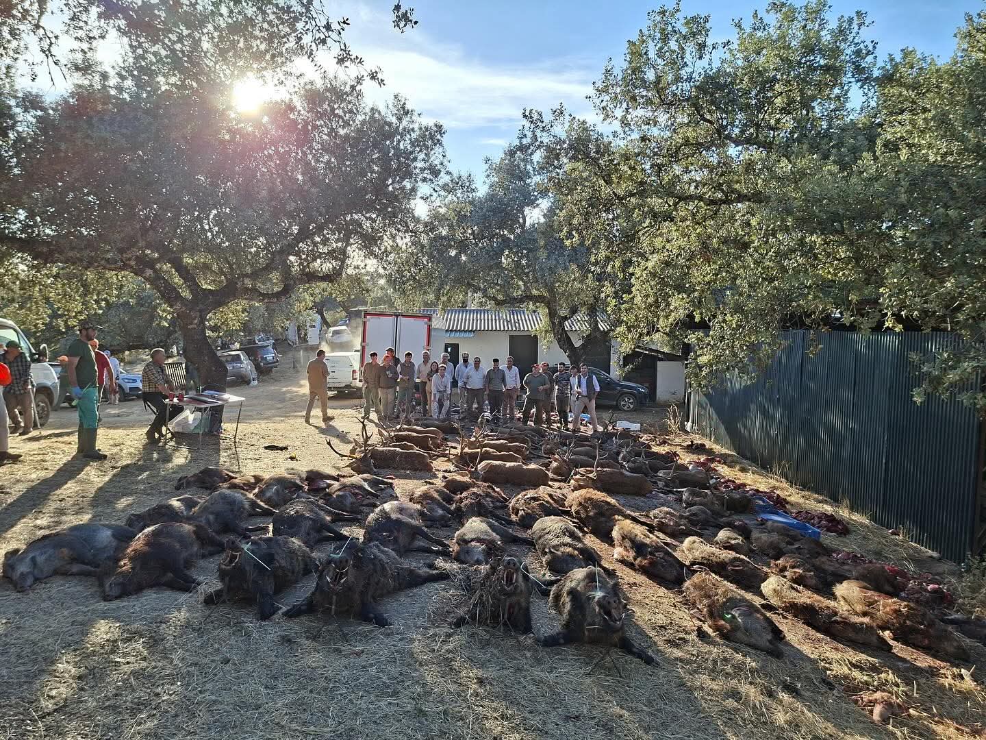 El trabajo de las rehalas fue, una vez más, digno de aplauso. Empujaron con fuerza, moviendo las reses y poniendo a prueba la puntería de los puestos. Los disparos se escuchaban repartidos por toda la mancha, y los nervios se transformaban en sonrisas a medida que los lances se iban consumando.
