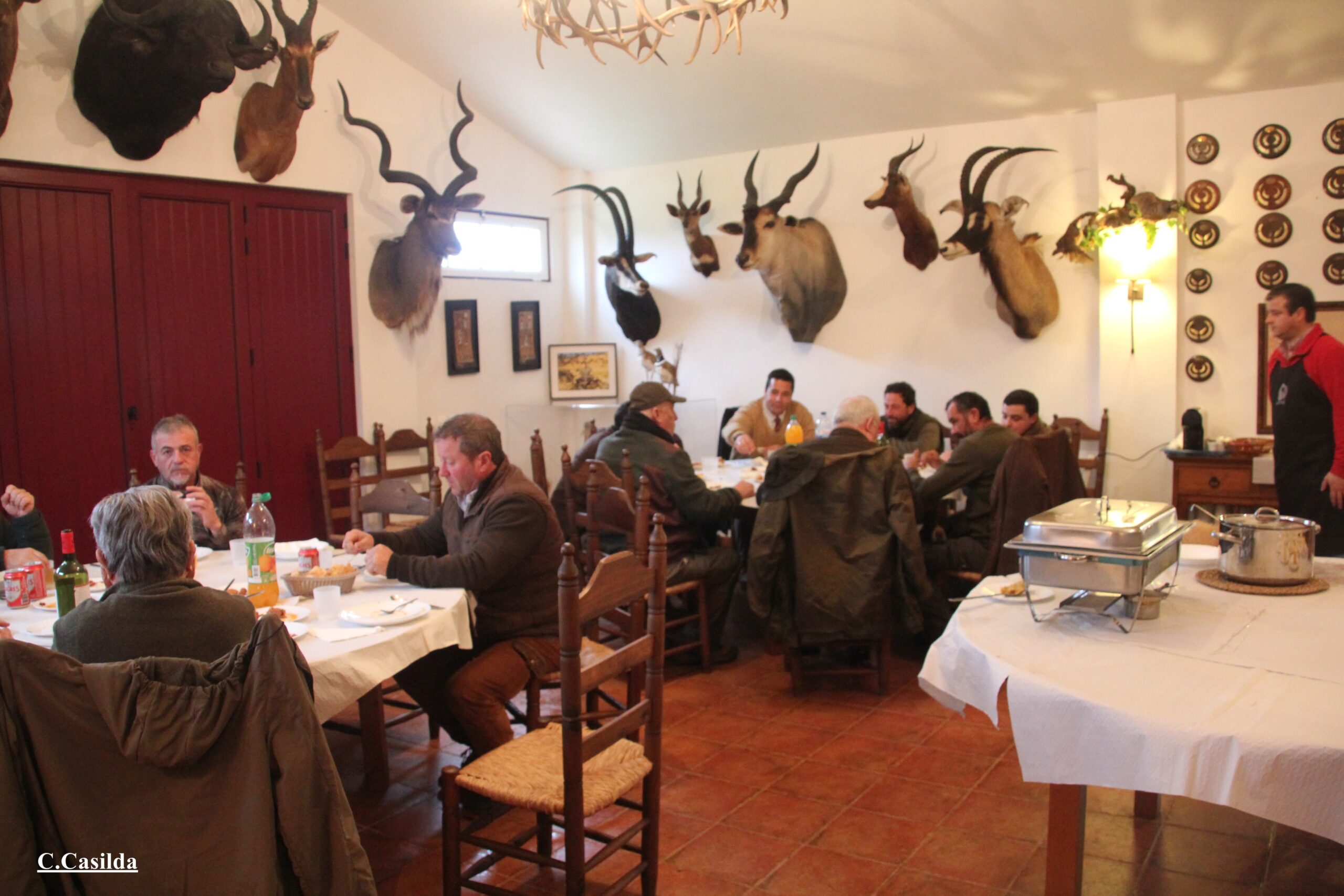 Al concluir la montería, los monteros disfrutaron de la comida de nuestro catering: unos calentitos garbanzos, acompañados de ricos aperitivos, mientras los postores sacaban la caza lo antes posible para realizar una bonita foto de plantel.