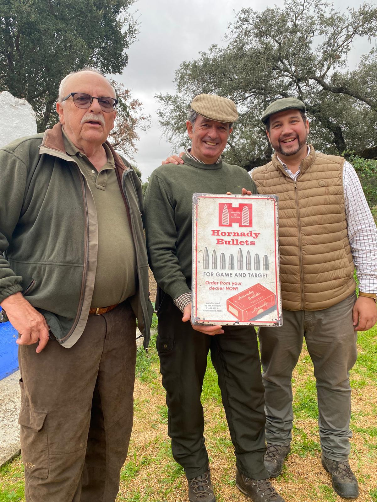 Un servidor tuvo la suerte de abatir uno de los dos navajeros que se cobraron. Hubo un puesto que voy a obviar el nombre que tuvo siete lances distintos a jabalí errándolos todos, el amigo Paco también tuvo cinco lances pero quedándose con tres, habiendo acertado sobre los otros dos, de los que consiguió cobrar uno a la postre. Manuel Hernández sigue fino este año y abatió el único jabalí con el que jugó lance de los tres que pudo ver. El premio Hornady se lo llevó el amigo Joaquín, por respetar el lance, a quien le entró el jabalí de la finca, el más grande que había sido captado por las cámaras, y que por dejarlo cumplir, le hizo un giro y partió en línea con Jesús Amigo que ocupaba la postura siguiente, al cual, le cogió agachado cargando el rifle y no se dio cuenta de que el morondongo le pasaba a escasos dos metros, y cuando lo quiso ver ya, fue demasiado tarde. Así se salió el mozo un año más. Por algo llegan a viejos.