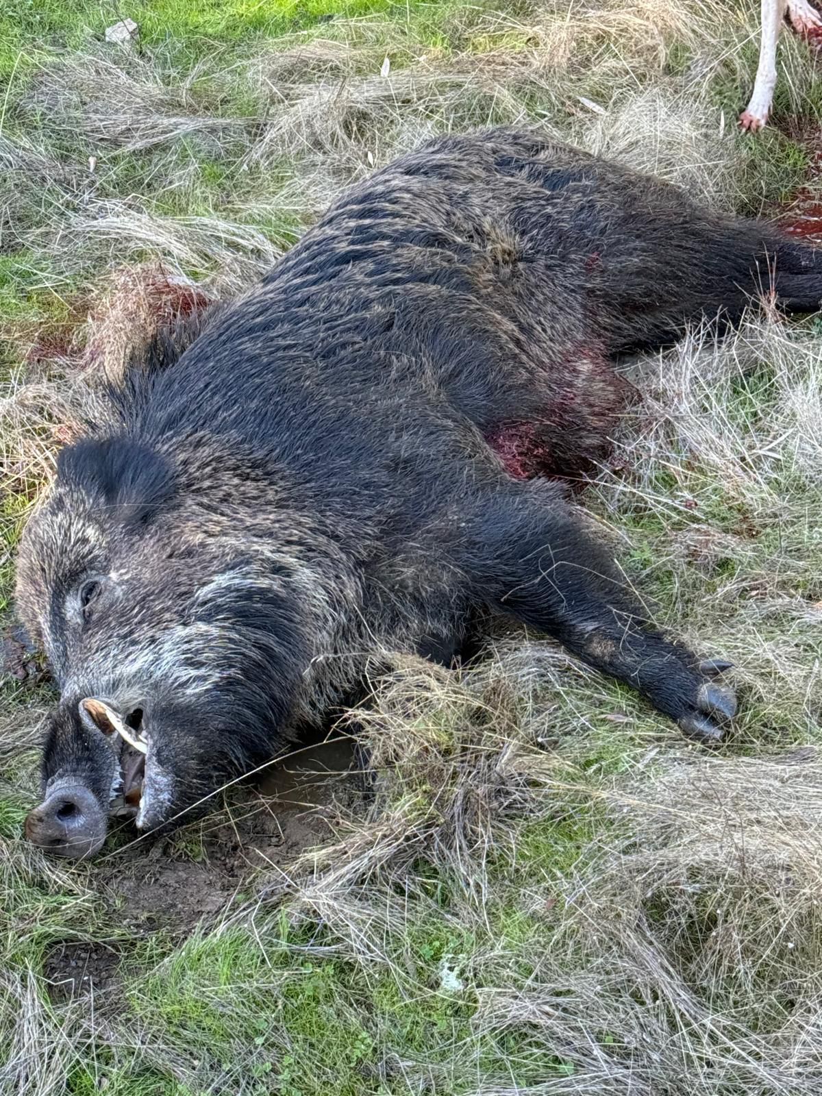 Destacar la fortuna de los hermanos Antonio y Virginio Alonso Hernández que se hicieron con dos de los mejores jabalíes, a los cuales hay que echar el metro.