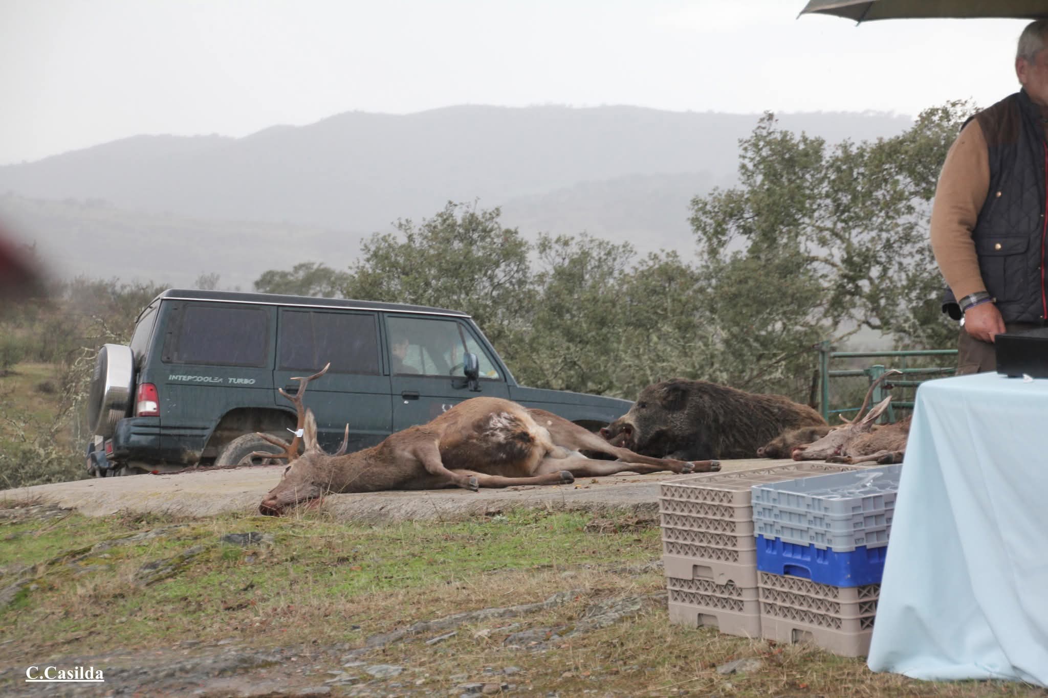 Cerramos el fin de semana cazando el domingo LA BALTASALA. Jornada que finalizó con 17 jabalíes y 3 venados, más unas ciervas de gestión. Quizás esperábamos cobrar algunos animales más por los tiros que se habían escuchado, pero es para lo que ha dado.