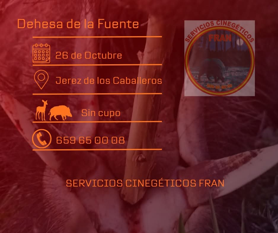 Últimos cuatro puestos para la magnífica batida de jabalíes que celebraremos en la finca Dehesa de la Fuente, en Jerez de los Caballeros, Badajoz, el próximo 26 de octubre.