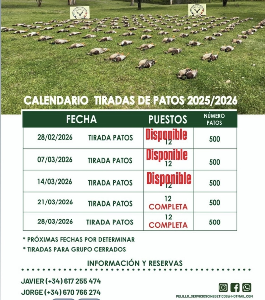 La organización cinegética PELILLO SC organiza divertidas TIRADAS DE PATOS en la localidad extremeña de Jarandilla de la Vera en la que aún hay algunos puestos disponibles.