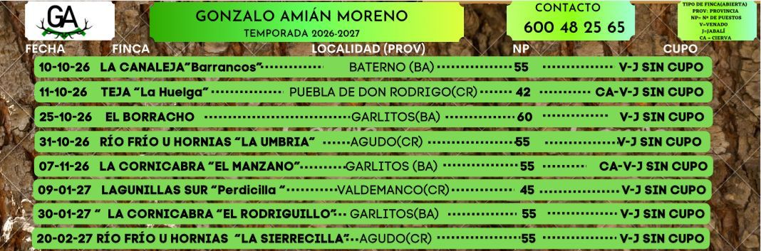 Tras una temporada 2025/2026 histórica, en la que se cumplió en todos y cada uno de los días programados, GAM Caza presenta su calendario de monterías 2026/2027, un proyecto que consolida el trabajo realizado y da un paso más en ambición y calidad.