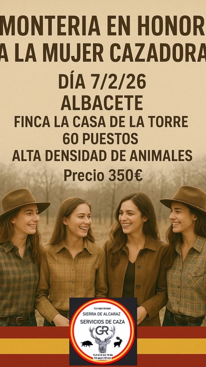 SIERRA DE ALCARÁZ SC anuncia para el día 7 de febrero una MONTERÍA EN HONOR A LA MUJER CAZADORA.
