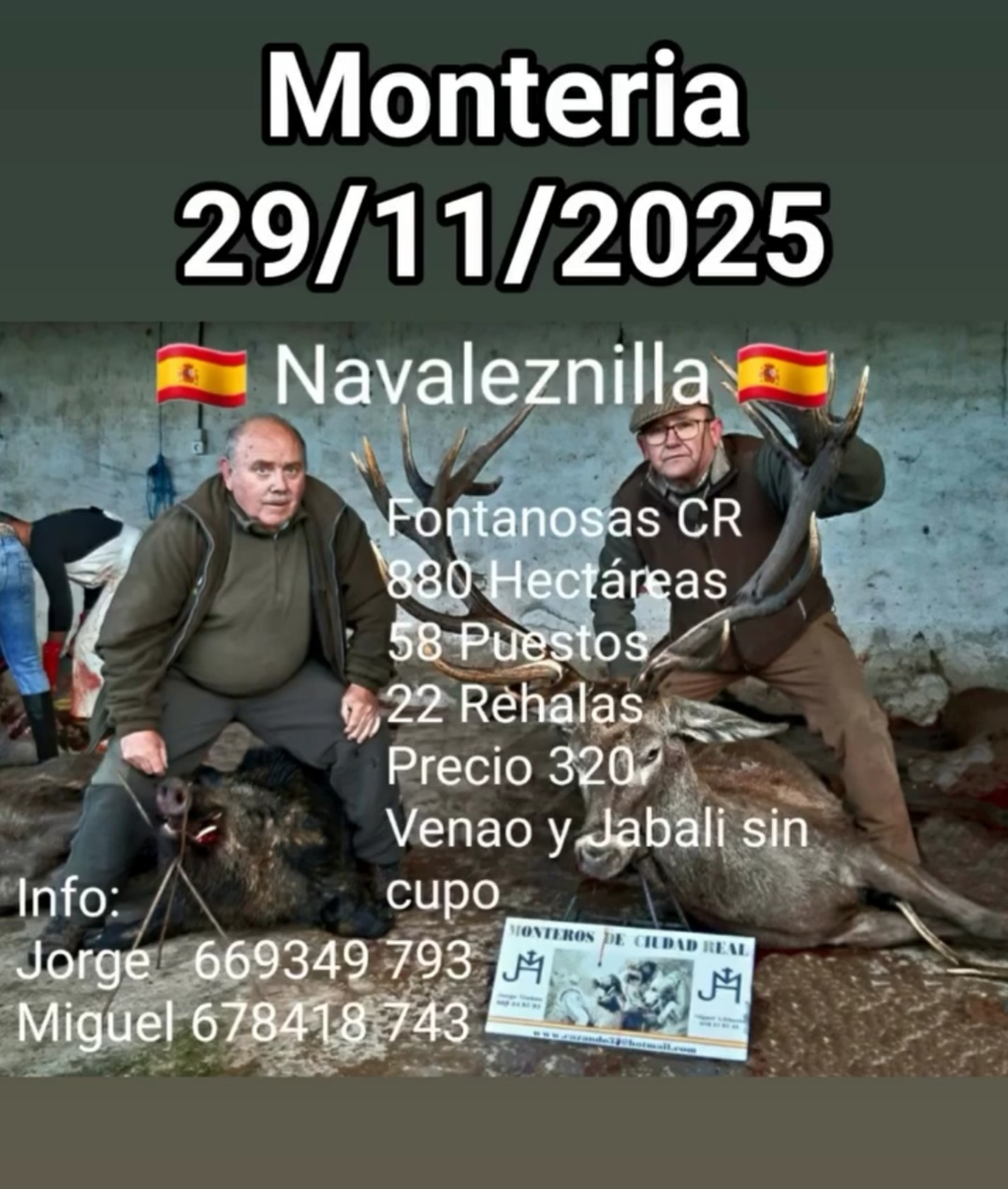 El día 29 de noviembre, MONTEROS DE CIUDAD REAL cazará en Fontanosas, Ciudad Real, la finca NAVALEZNILLA, mancha lindera a Cerros de la Casa que ya os adelantamos va a ser un MONTERIÓN de muchos lances y agradables sorpresas.