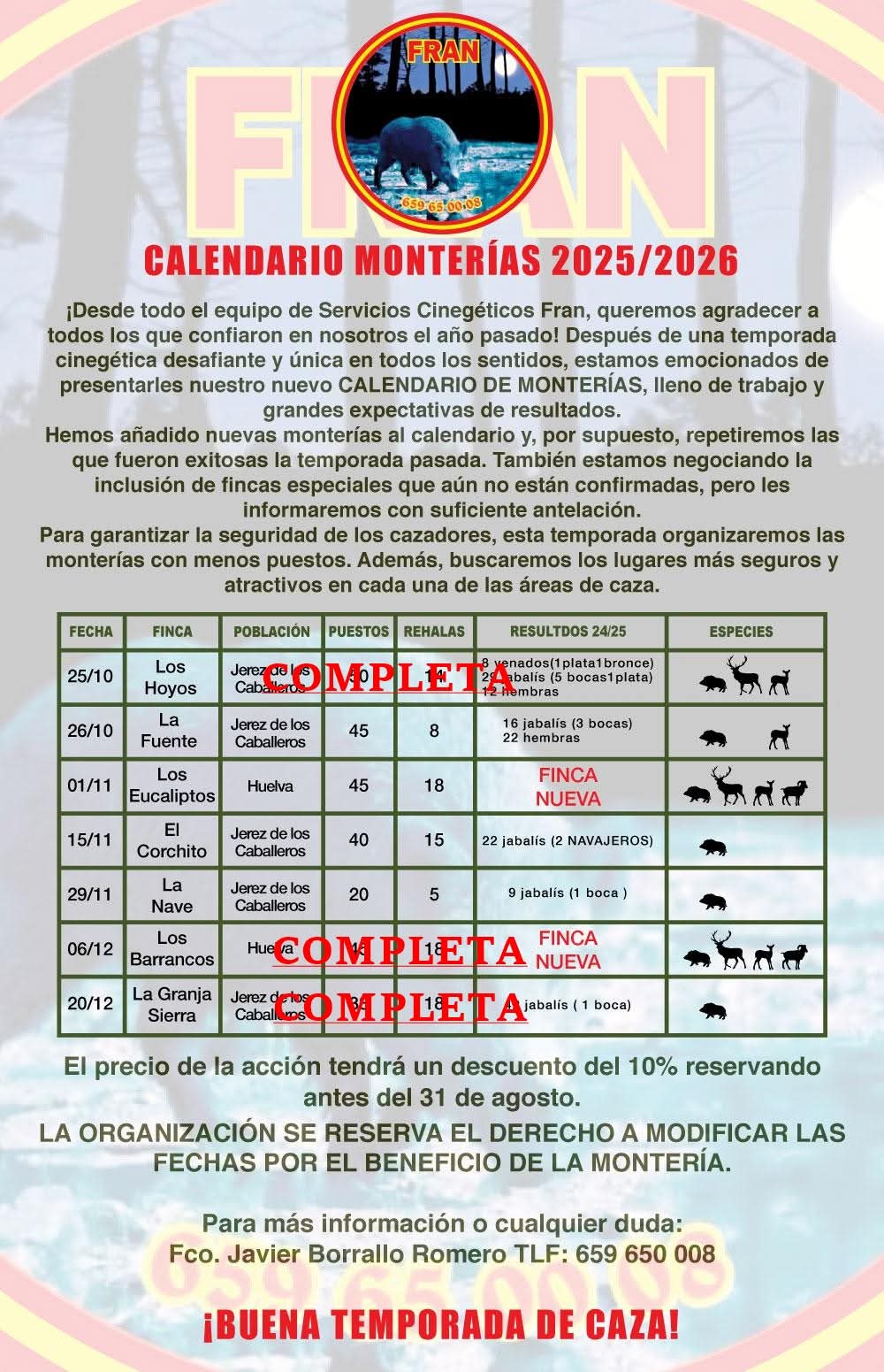 Información y reservas al teléfono 659 65 00 08- Fran.